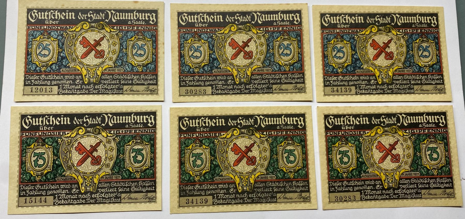 German - Naumburg, notgeld, 1921, a set of 6 pcs, 25 & 75 pfennig (Total: 6pcs).