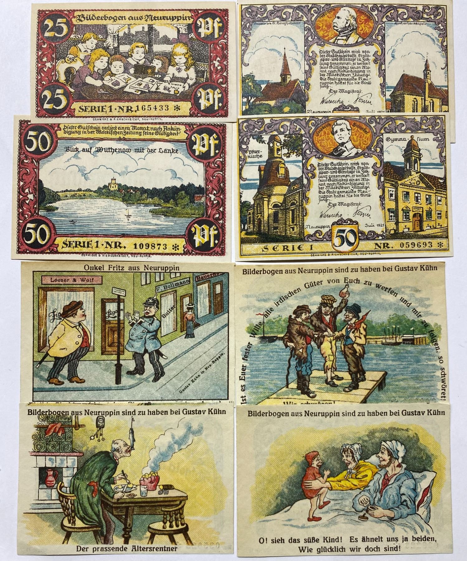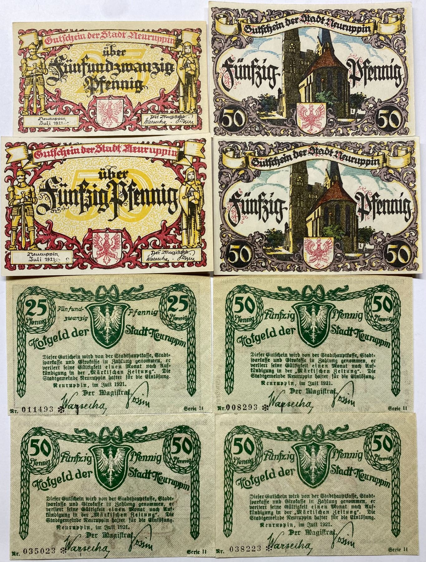 German - Neuruppin, notgeld, 1921, 2 set of 4 pcs, 25& 50 pfennig (Total: 8pcs).