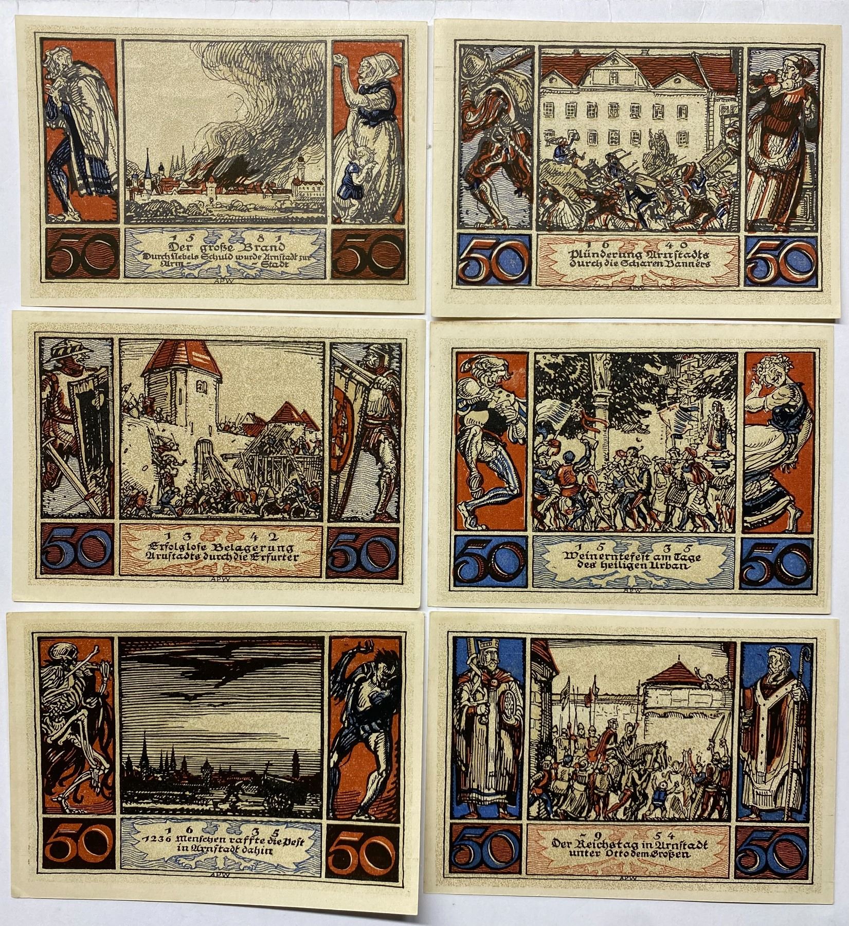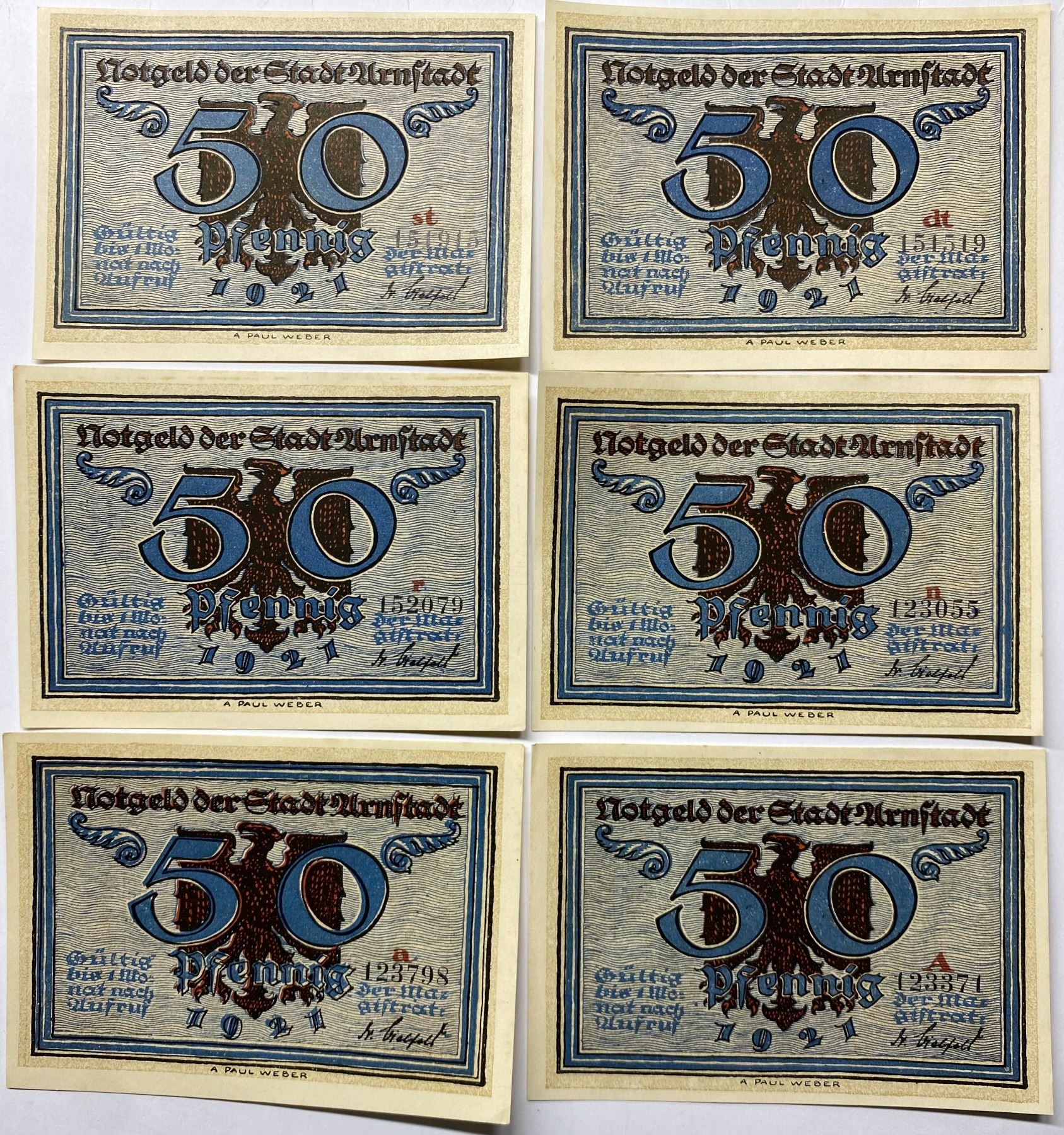 1921, 德國, 一套6 張50 芬尼緊急票 (共6張)