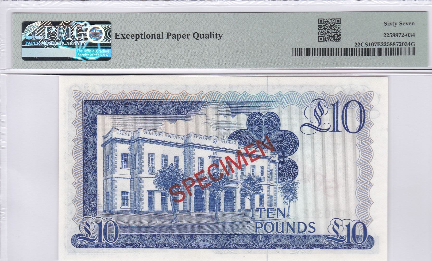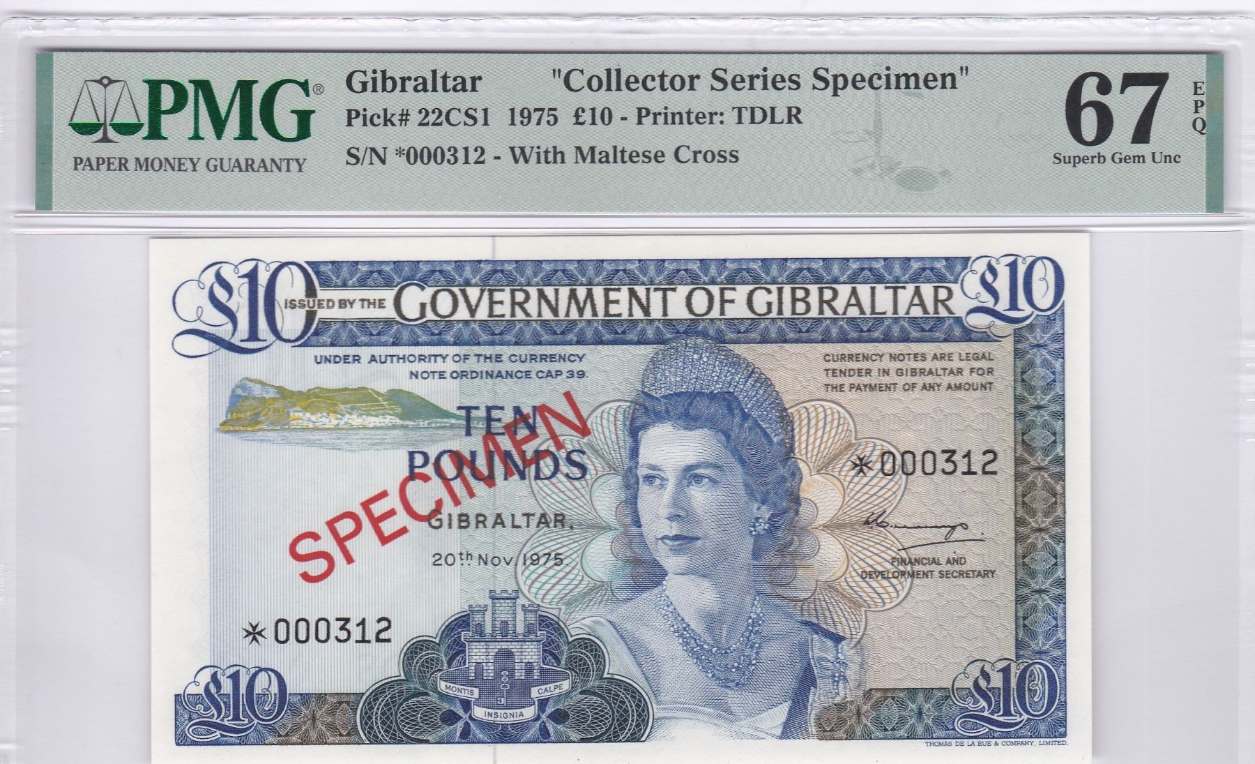 1975, 直布羅陀, 10鎊, 樣票, 編號: *000312. PMG 67EPQ.
