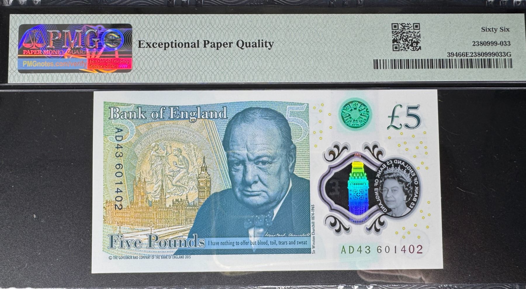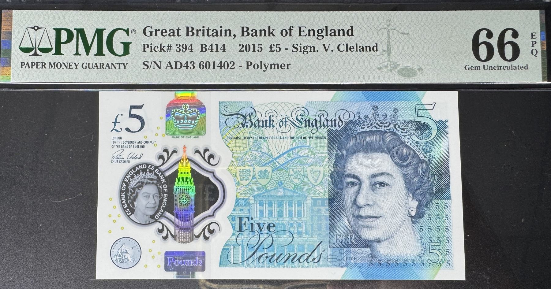 2015, 英國伊利沙伯二世, £5, 編號: AD43 601402. PMG 66EPQ.