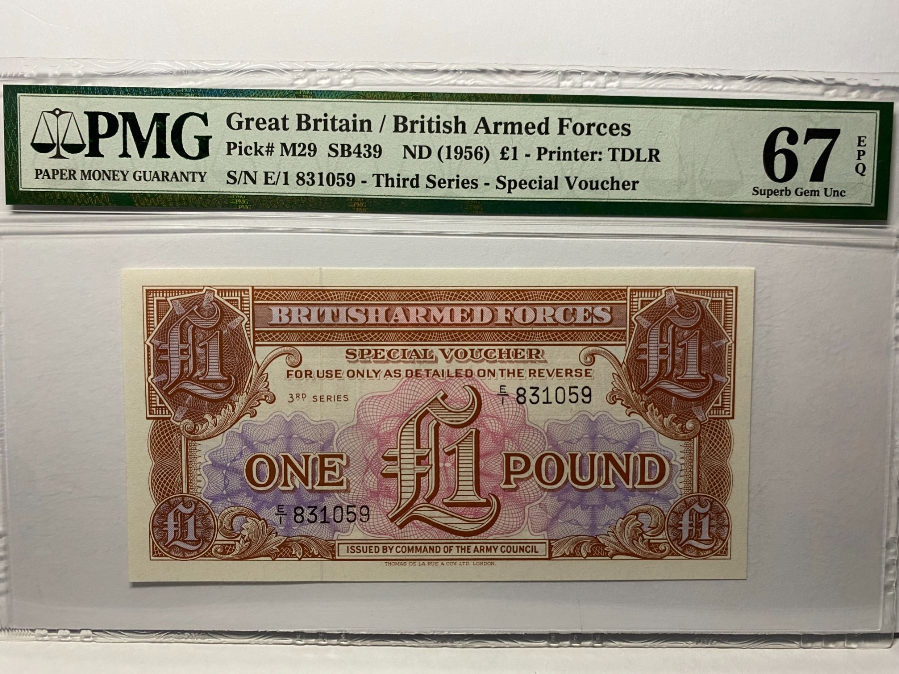 E/1 831059, ND 1956 英國軍票, 1 鎊, PMG 67EPQ, E/1 831059, ND 1956 Great Britain/British Armed Forces, 1 Pound, PMG 67EPQ