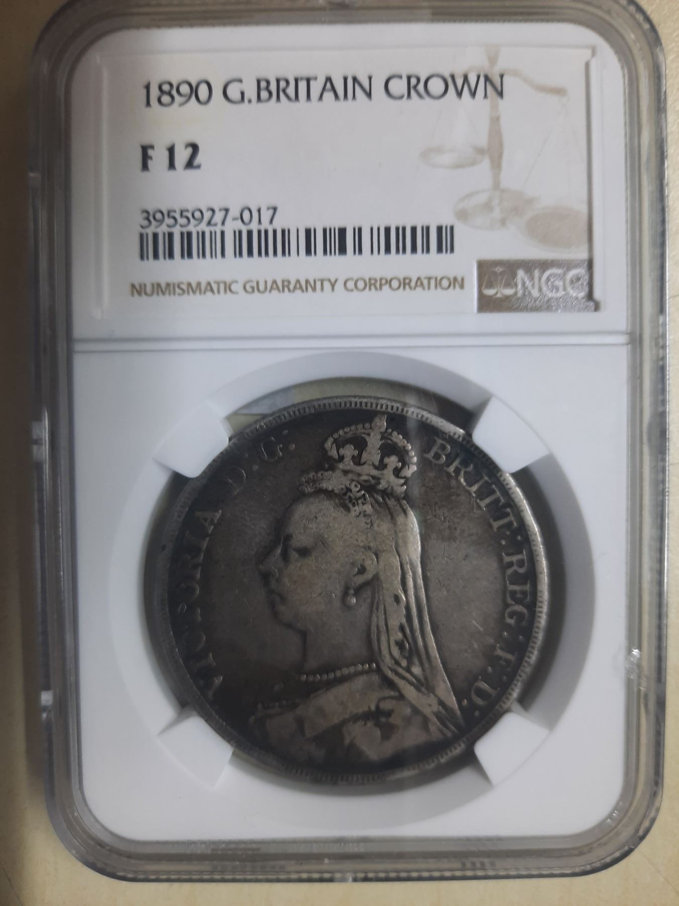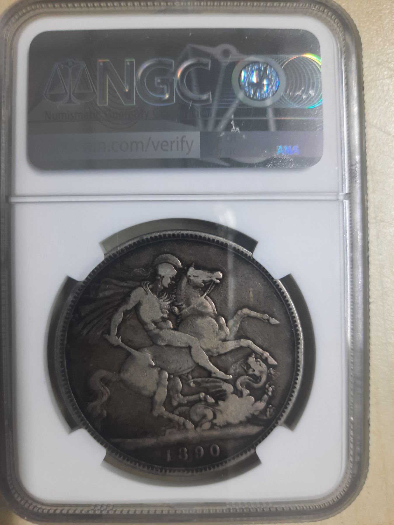 英國, Crown 銀幣, 1890, NGC F12, Great Britain, Crown silver coin, 1890, NGC F12