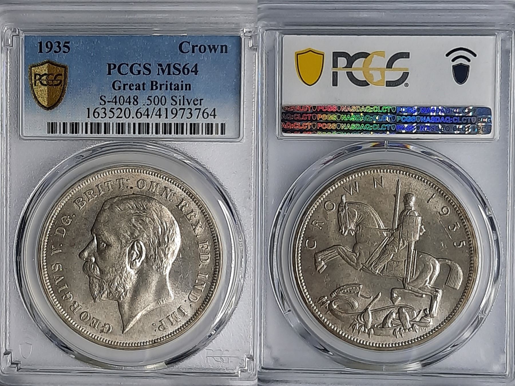 英國, 銀幣, 1935, S-4048 .500 silver, PCGS MS64, Great Britain, Crown silver coin, 1935, S-4048 .500 silver, PCGS MS64
