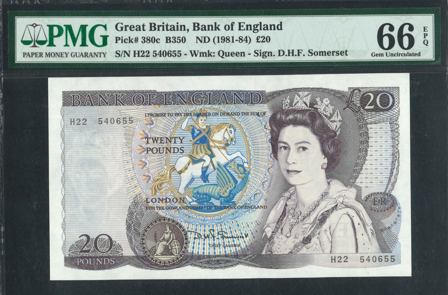 ND (1981-84), 英國, £20, 編號: H22 540655. PMG 66EPQ.