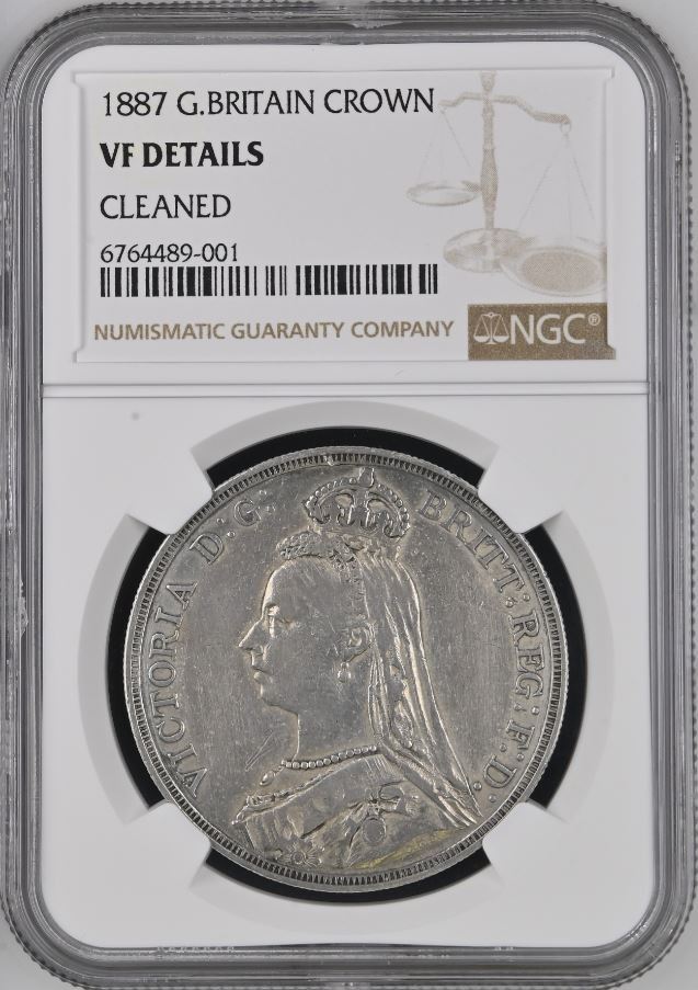 Great British, 1887, Queen Victoria Crown Silver coin, NGC VF Detais Cleaned.