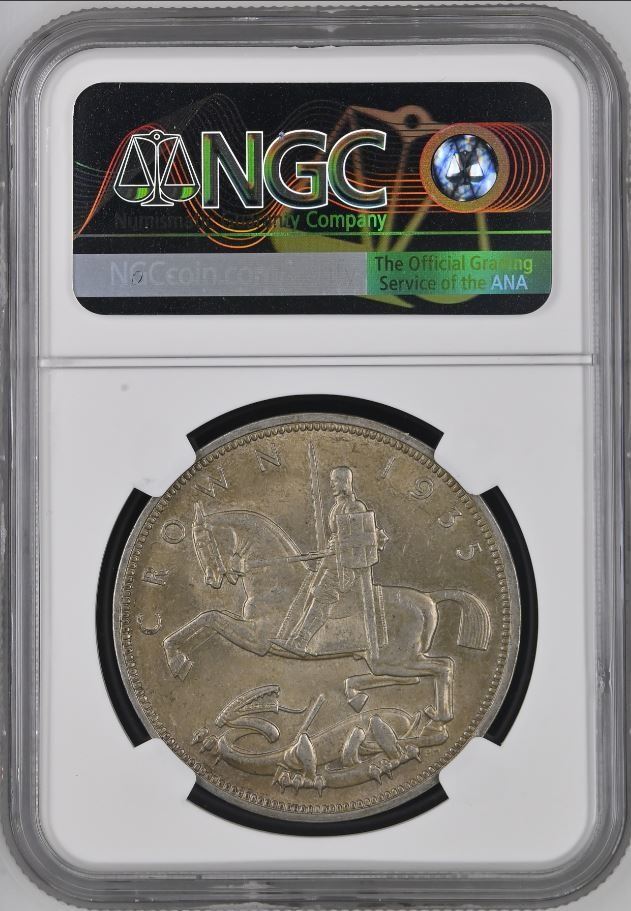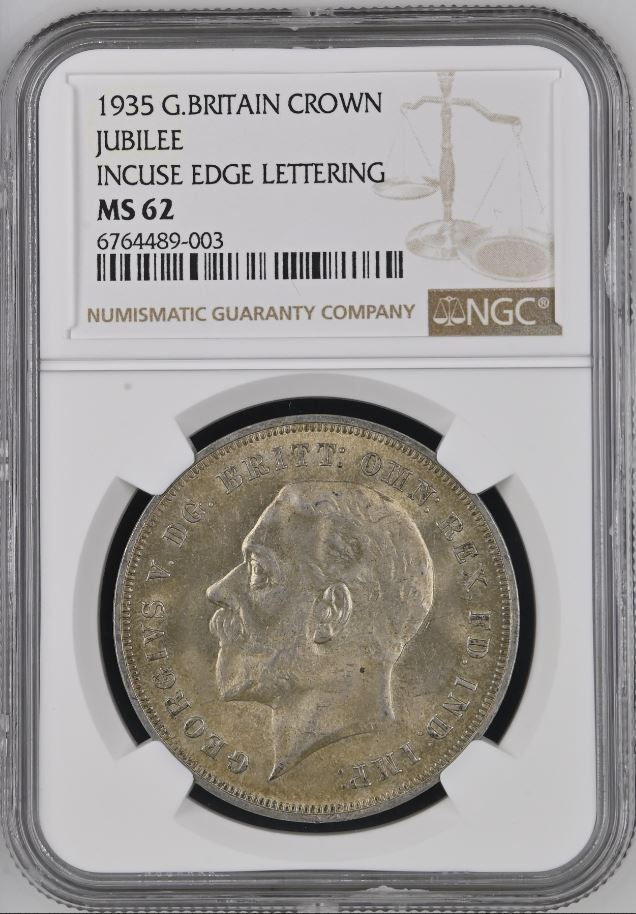 Great British, 1935, King Edward V Crown Jubilee Silver coin, Incuse edge Lettering.NGC MS 62.