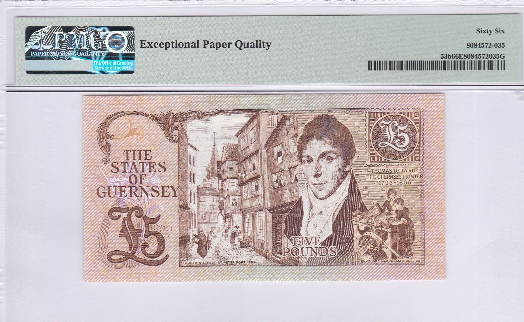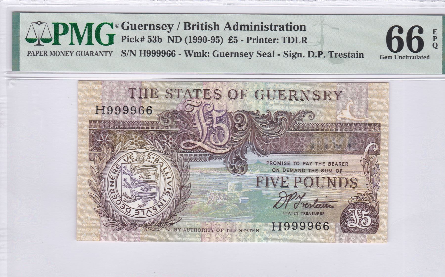 ND (1966), 根西島5鎊, 編號: H999966. PMG 66EPQ. 對子號