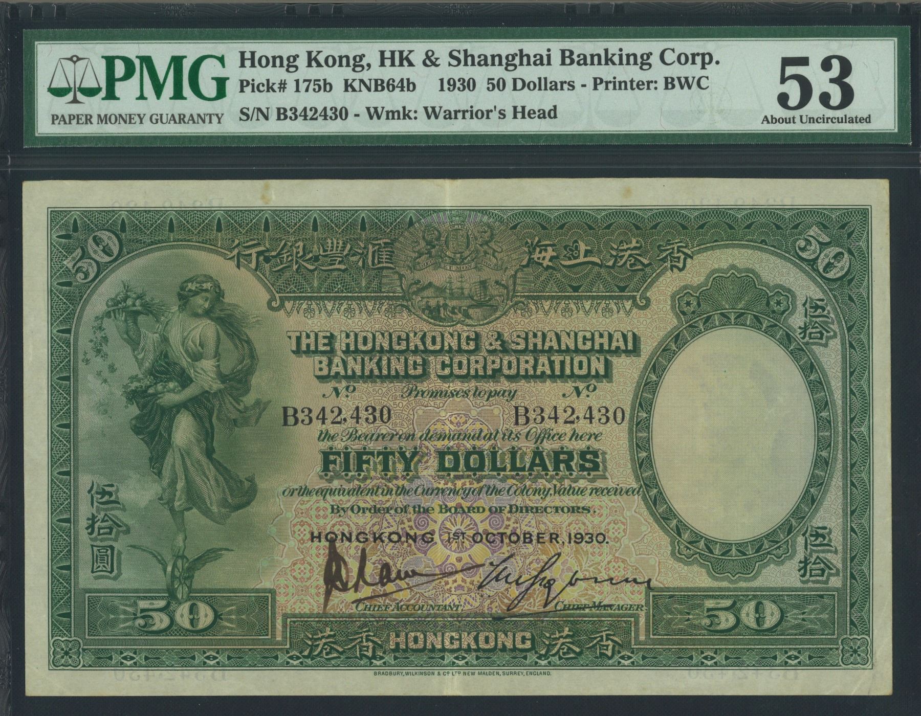 HK & Shanghai Banking Corp., 1930, $50, B342430. PMG 53.