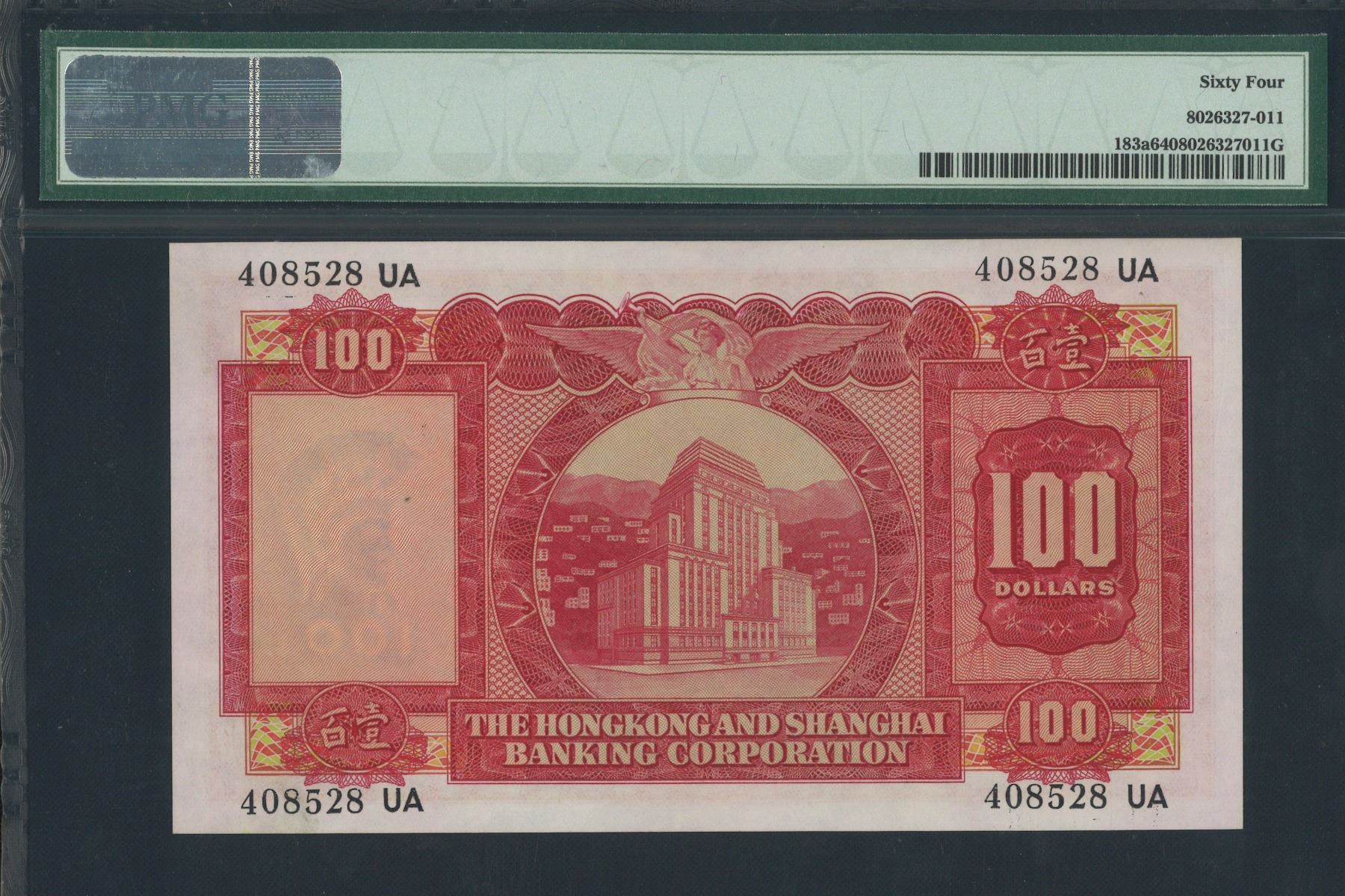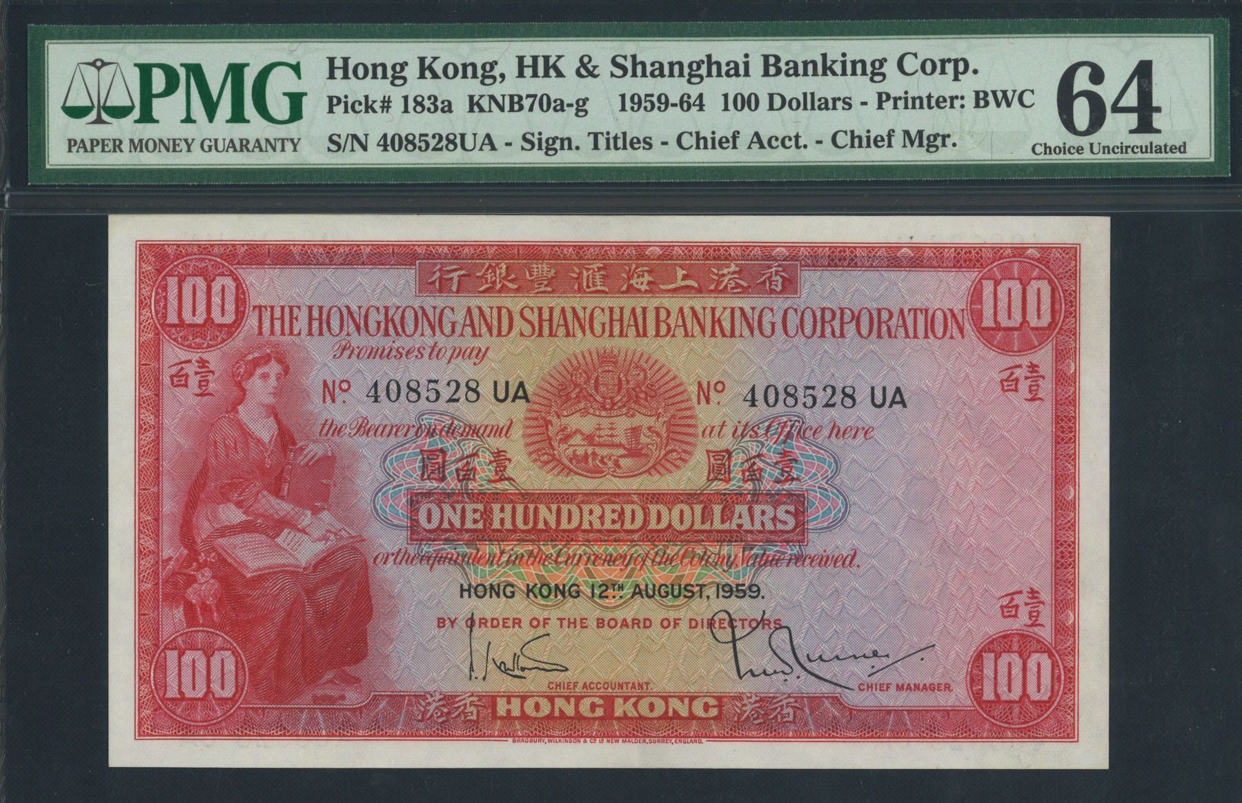 1959, 匯豐銀行, $100, 編號: 408528UA. PMG 64. UA首發冠.