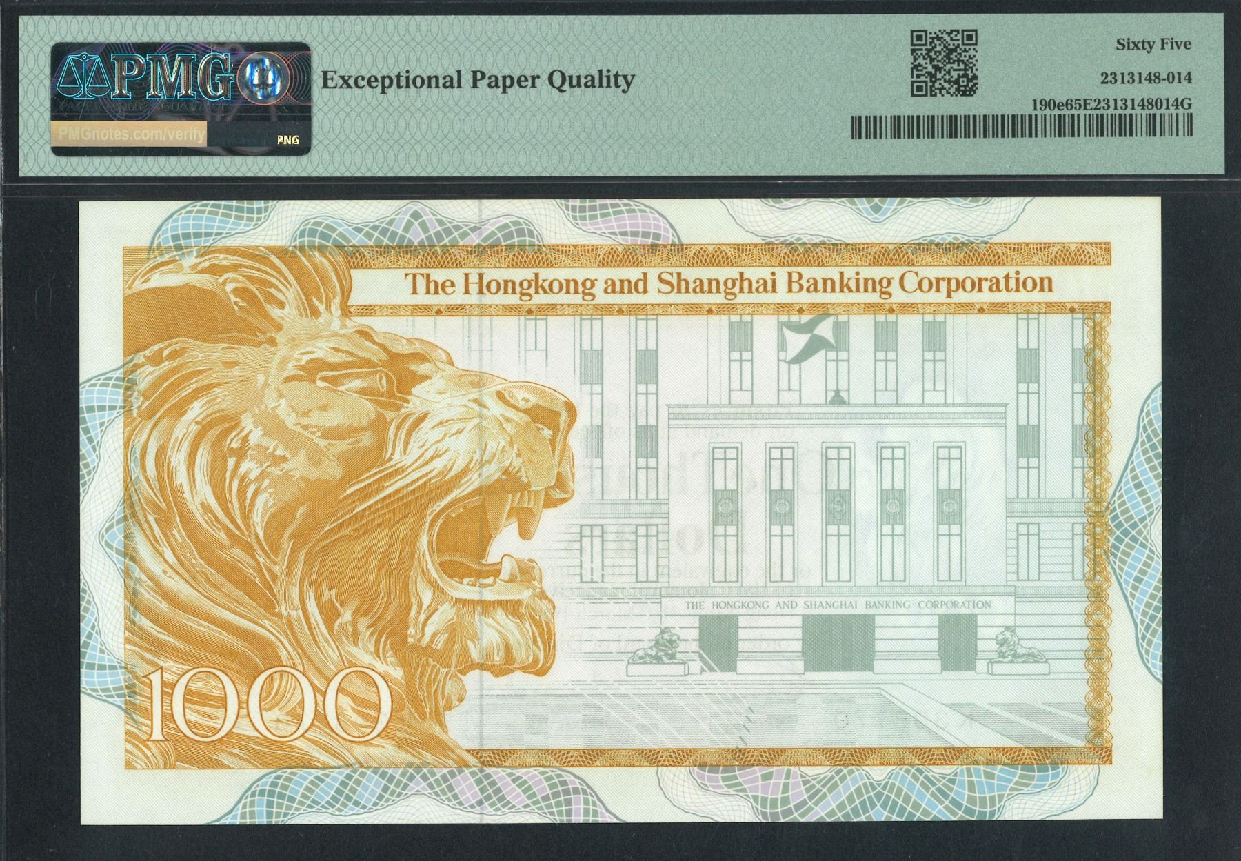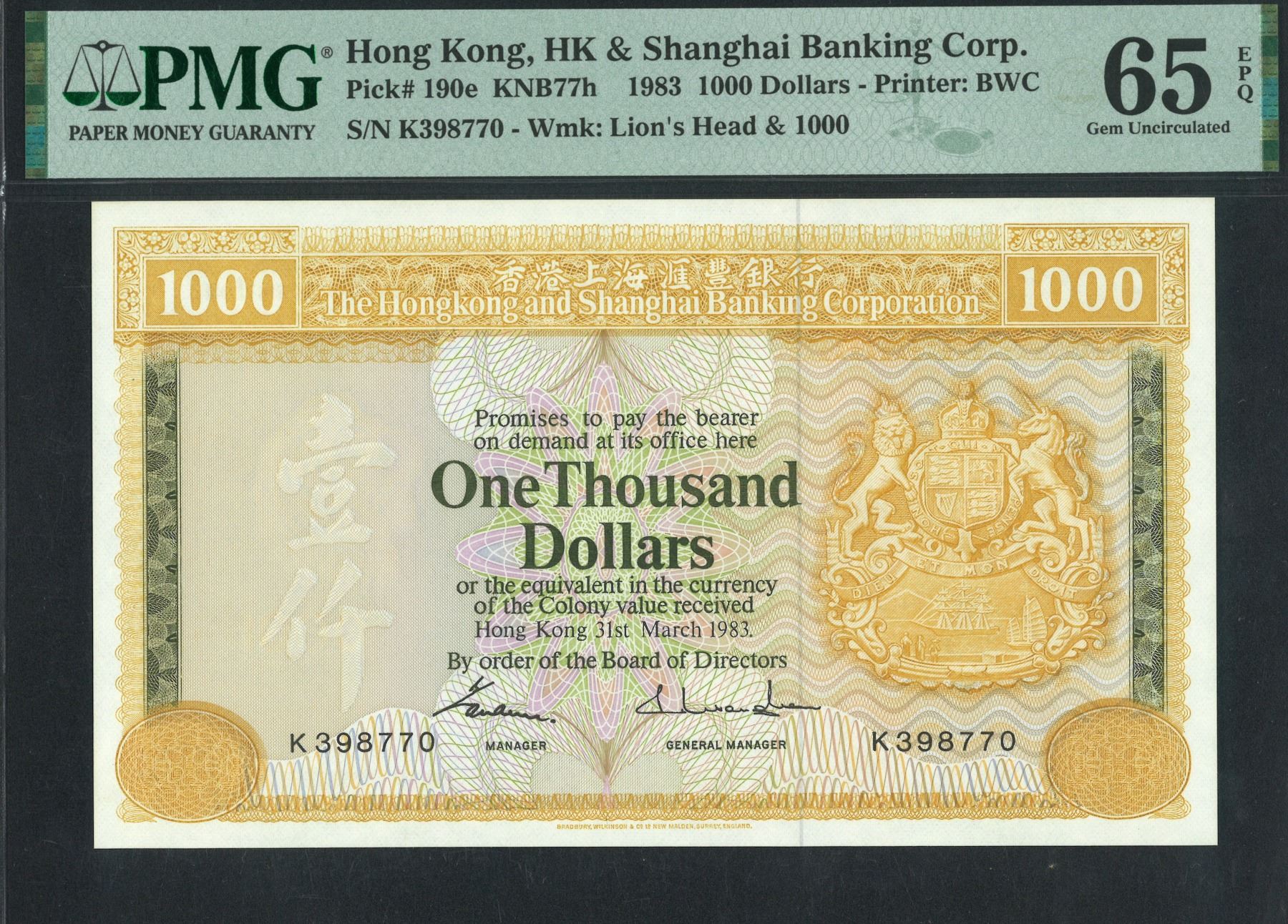 1983, 匯豐銀行, $1,000, 編號: K398770. PMG 65EPQ.