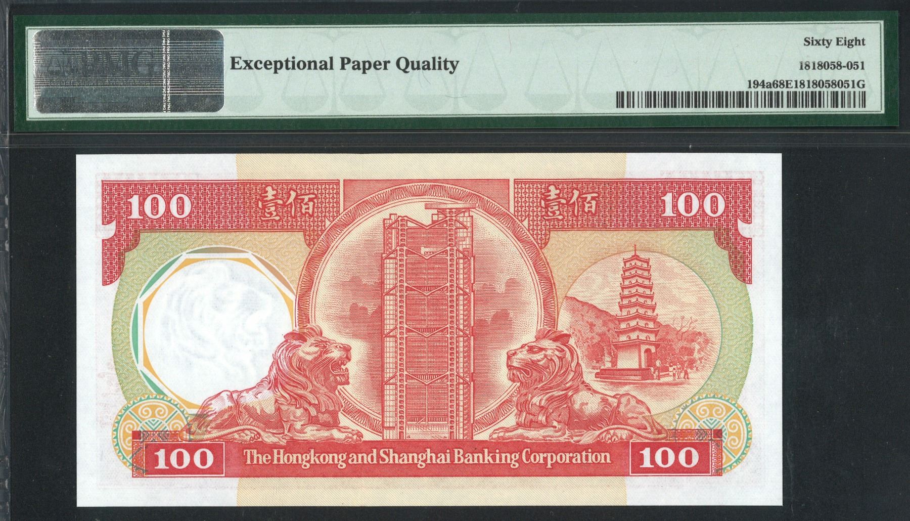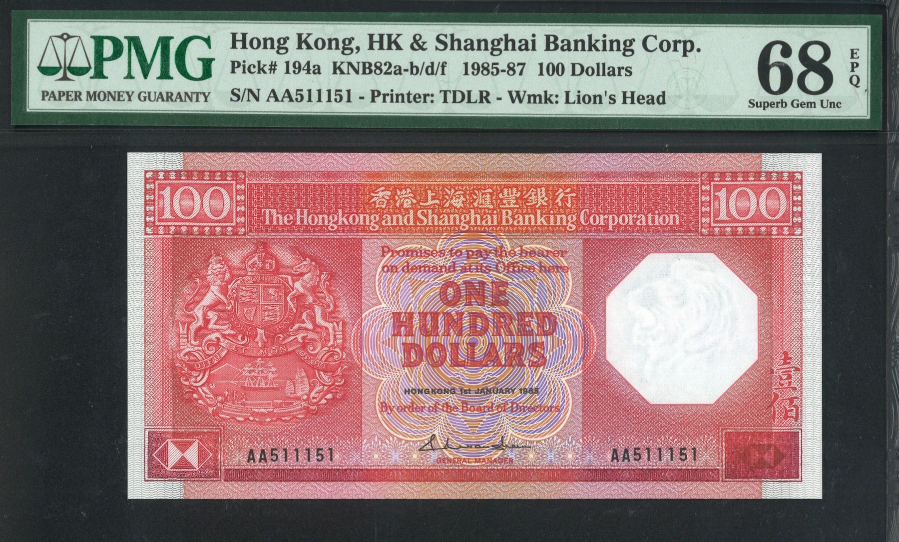 HK & Shanghai Banking Corp. 1985, $100, AA511151. PMG 68EPQ.