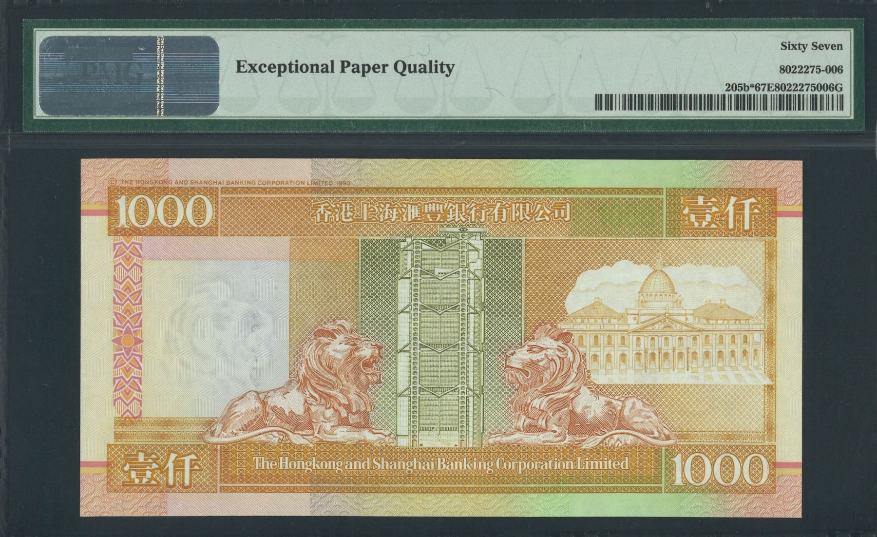 HK & Shanghai Banking Corp. 1997, $1,000, ZZ042797. PMG 67EPQ. Rare 1997 Replacement.