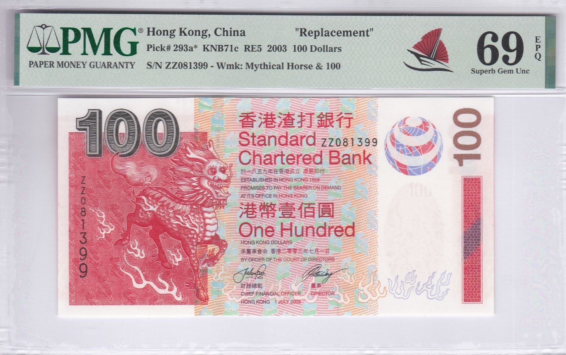 2003, 匯豐銀行, $100, 編號: ZZ081399, PMG 69EPQ. 補版