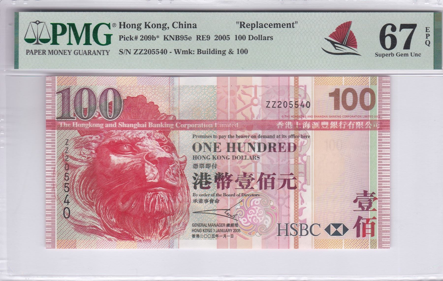 2005, 匯豐銀行, $100, 編號: ZZ205540, PMG 67EPQ. 補版