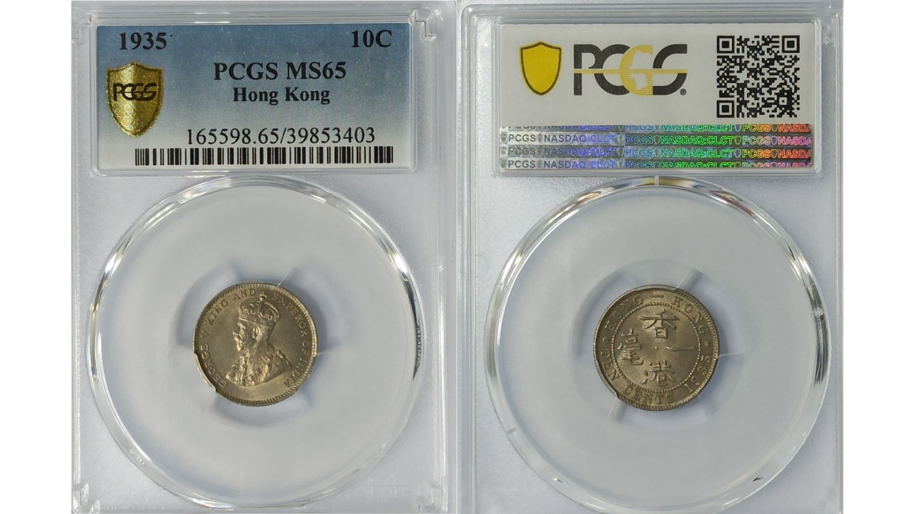 香港, 10 仙 硬幣, 1935, PCGS MS65, Hong Kong, 10 cents coin, 1935, PCGS MS65