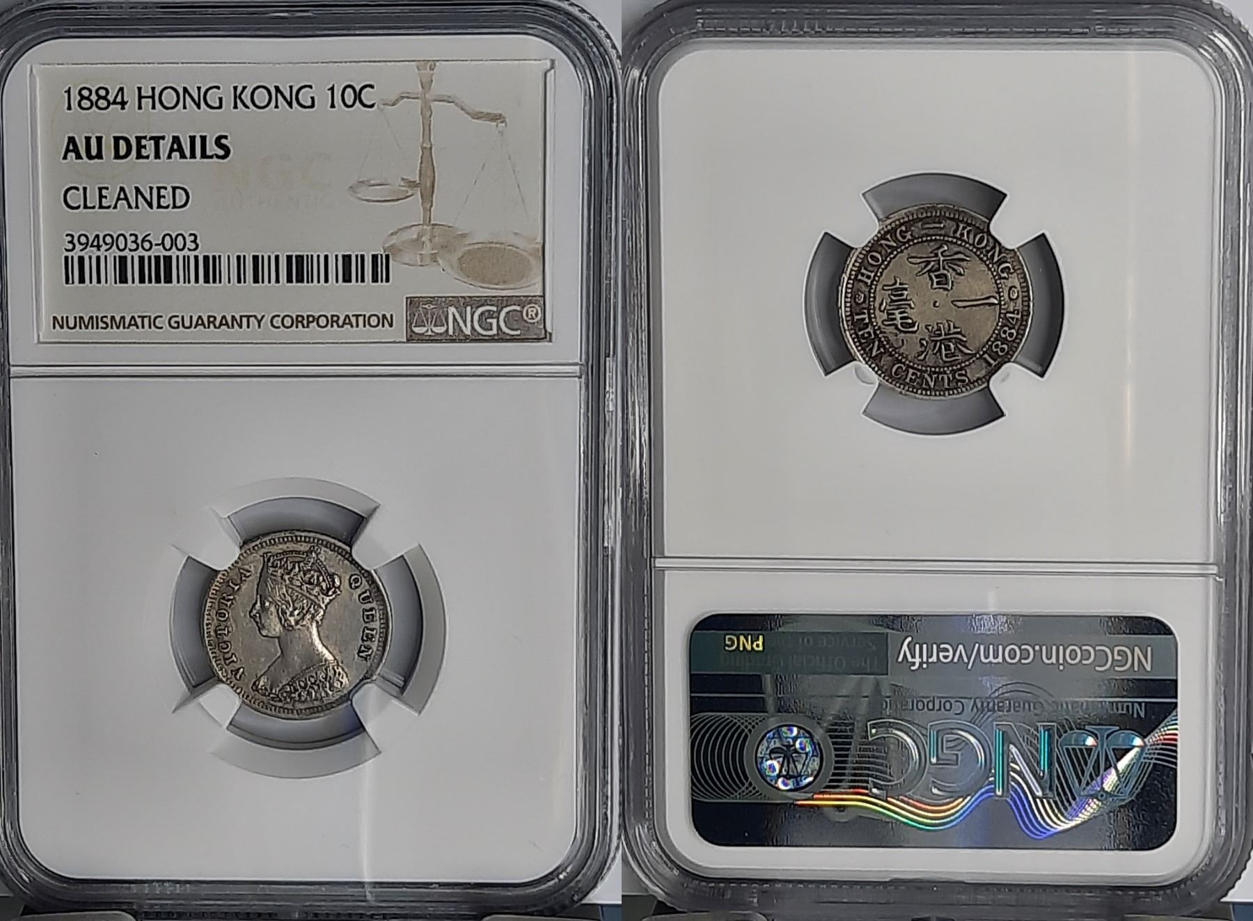 香港, 10 仙 銀幣, 1884, NGC AU Cleaned, Hong Kong, 10 cents silver coin, 1884, NGC AU Cleaned