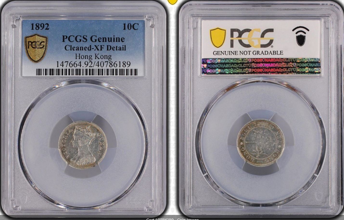 Hong Kong, 1892, Queen Victoria 10 cent. PCGS Cleaned -XF Detail.