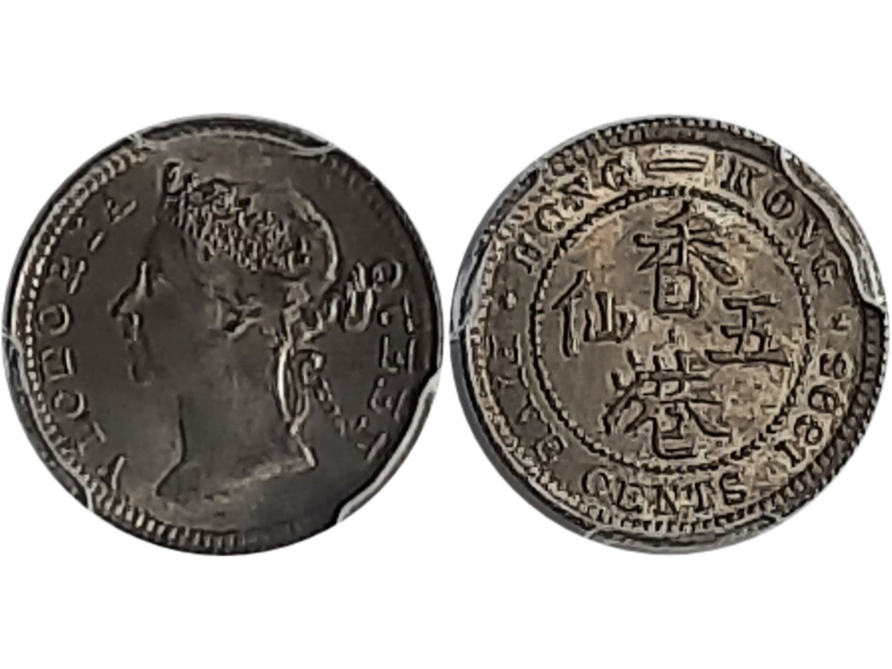 1898年 香港五仙 銀幣。 "維多利亞女王"