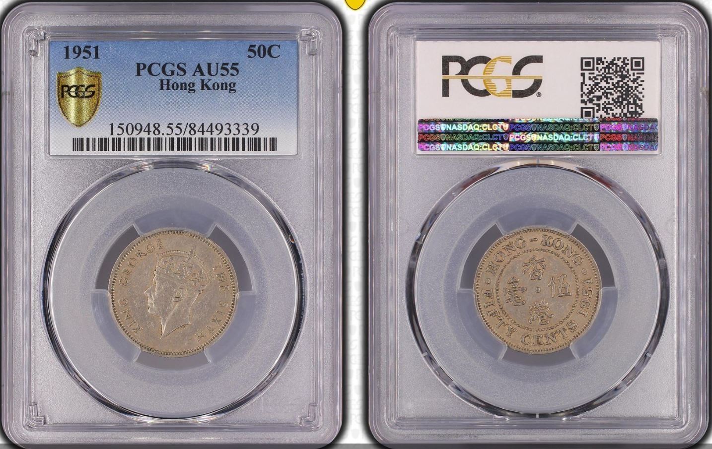 Hong Kong, 1951, King George VI, 50 cent, PCGS AU55. Key Date