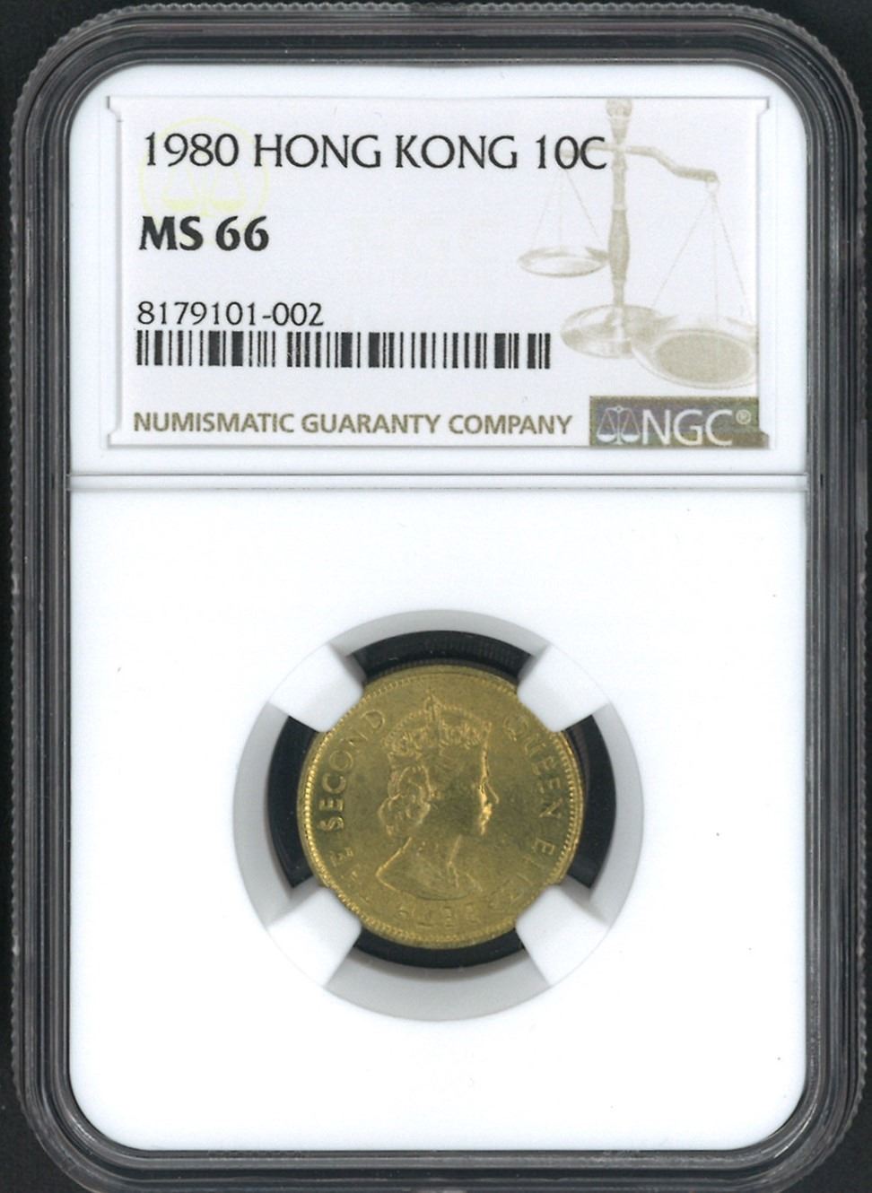 Hong Kong, 1980, Queen Elizabeth 10 cents, NGC MS66.