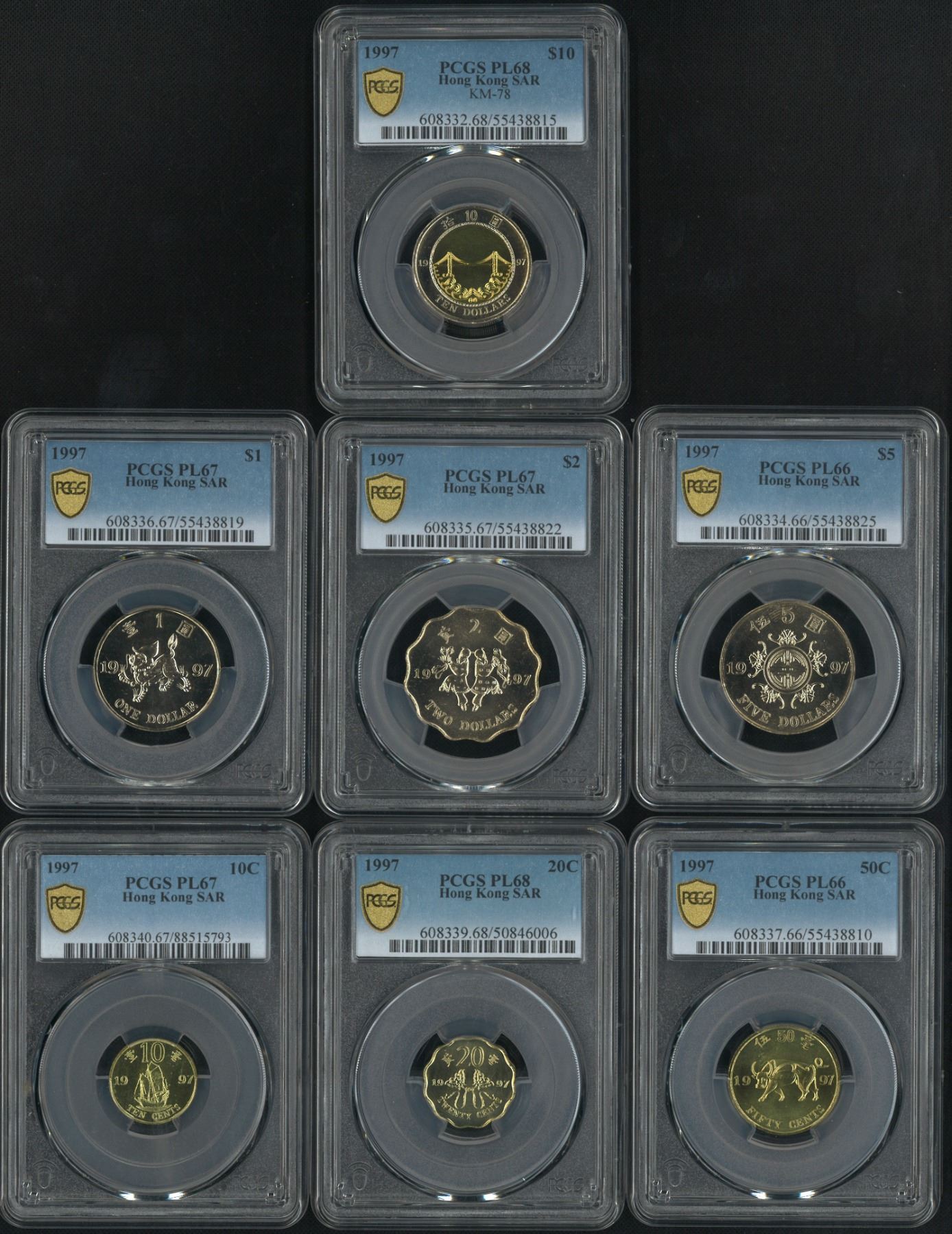 1997, 香港普鑄回歸版流通幣套裝, 一套七枚. 全部已評 PCGS PL66- 68.