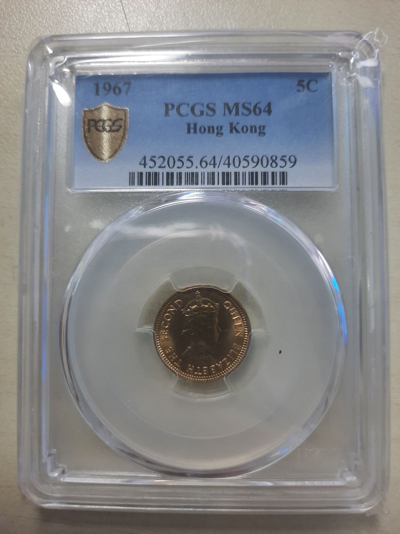 香港, 5 仙 銀幣, 1967, PCGS MS64, Hong Kong, 5 cents coin, 1967, PCGS MS64