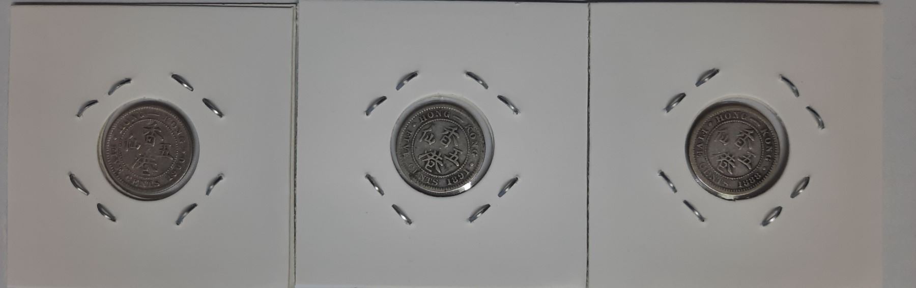 香港維多利亞 5 仙 銀幣, 包括年份1888, 1891H, 1900H,共3 枚 , 全VF品, Lot of 3, Queen Victoria, contain year of 1888, 1891H, 1900H, Hong Kong 5 cents silver coin, All in VF condition