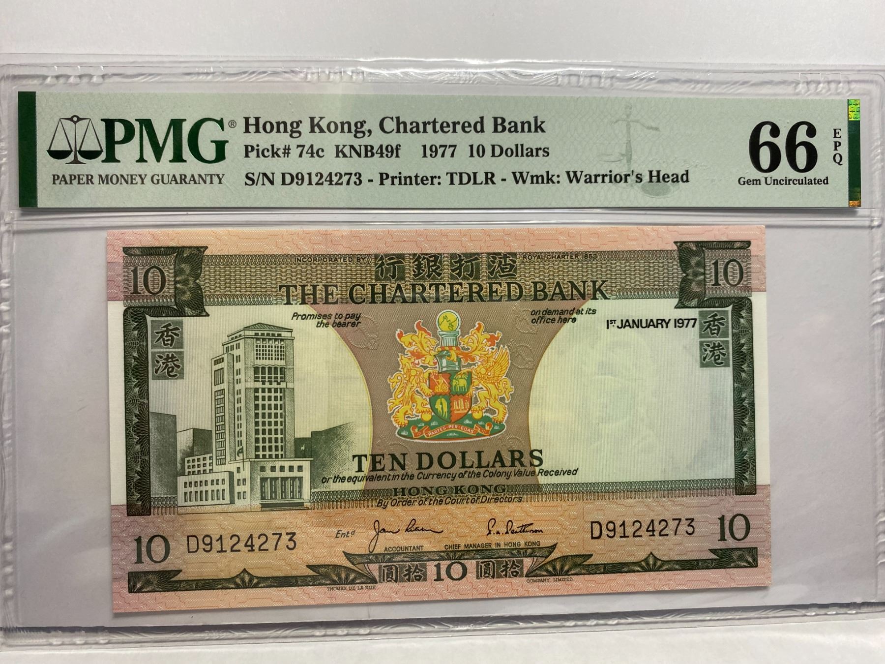 D9124273, 1977 香港渣打銀行, 10 圓, PMG 66EPQ, D9124273, 1977 Hong Kong Chartered Bank, 10 dollars, PMG 66EPQ