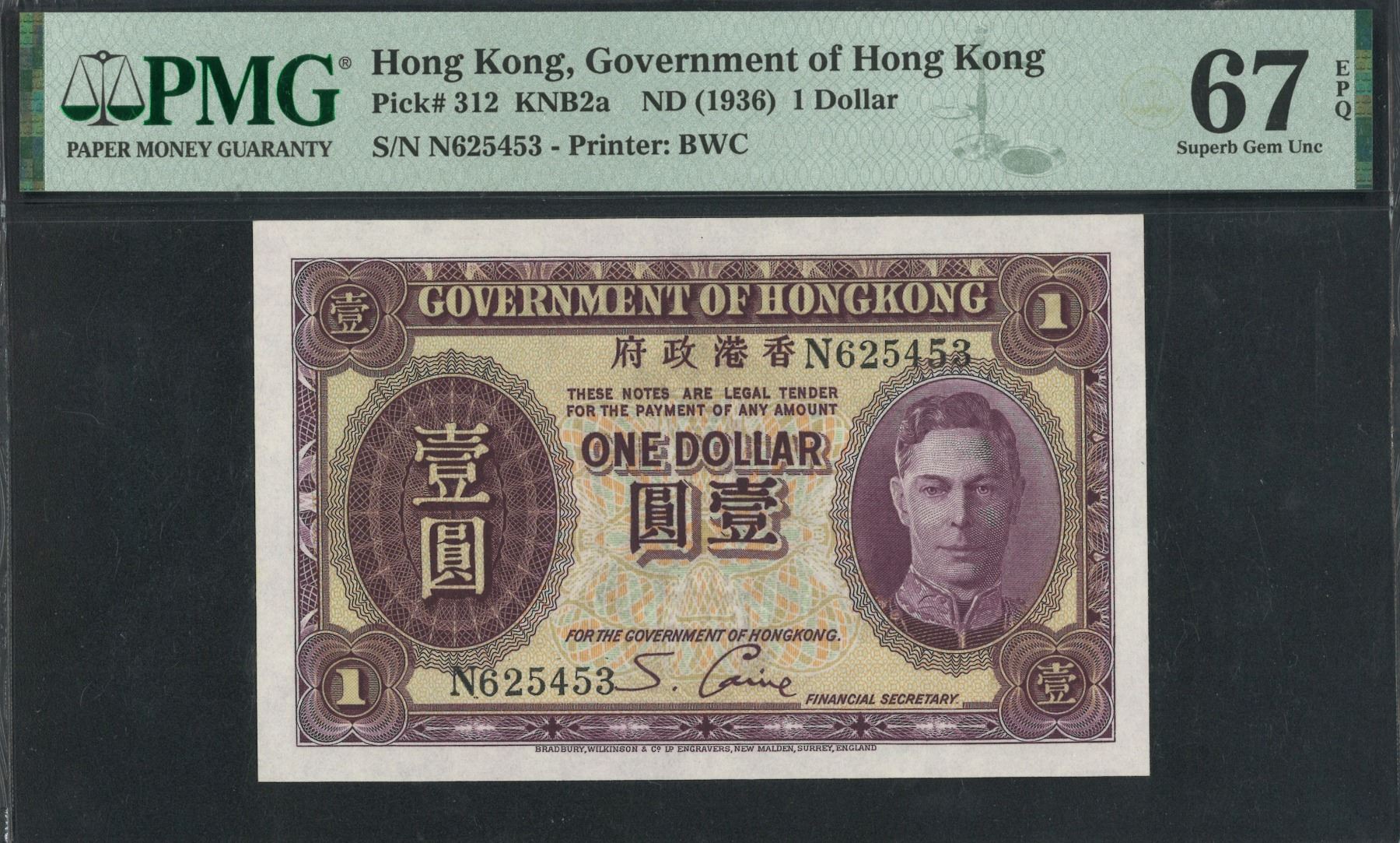 Hong Kong Government, ND (1936), $1, N625453. PMG 67EPQ.
