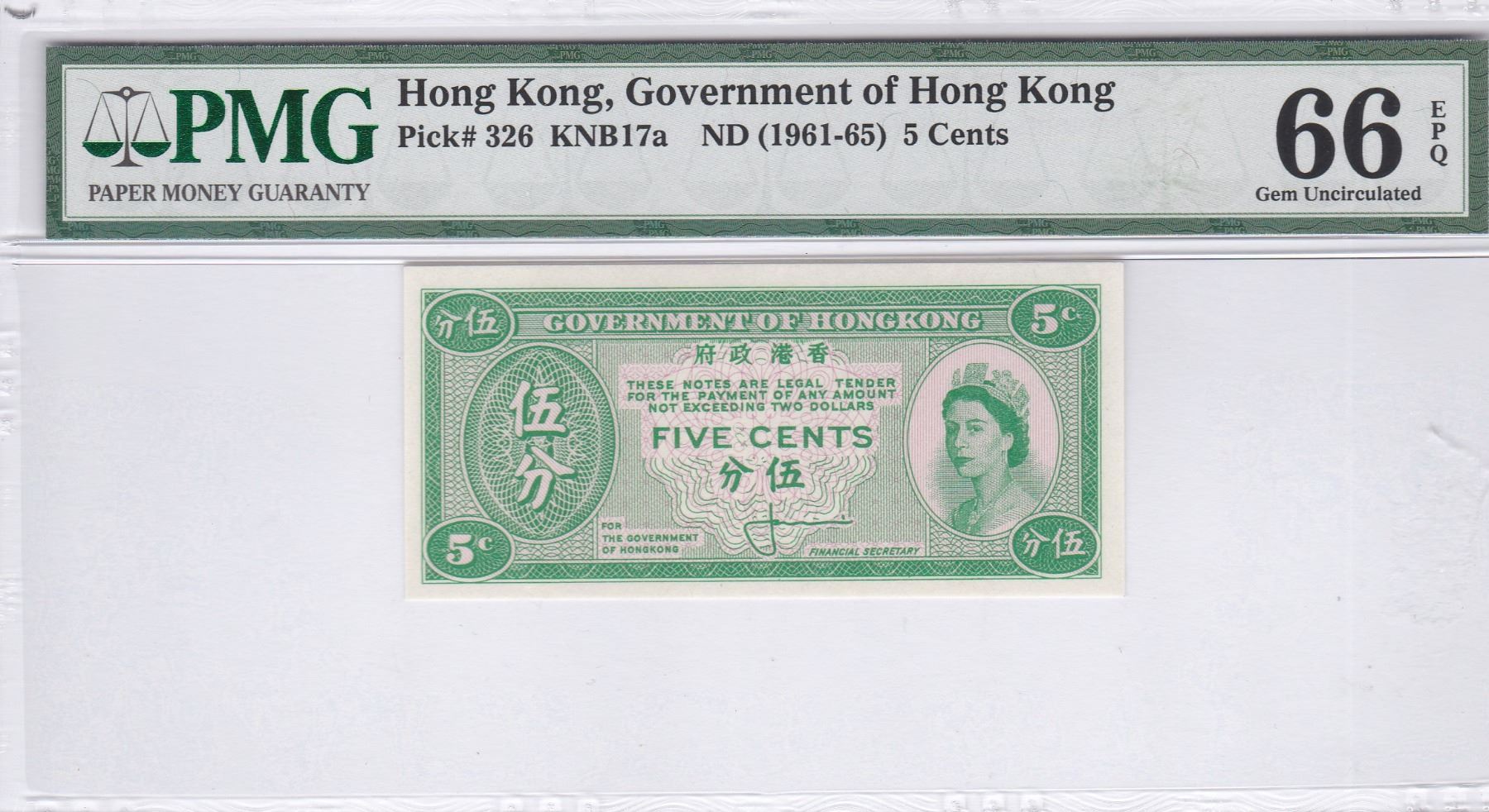 ND (1961 -65), 香港政府伍分, PMG 66EPQ.