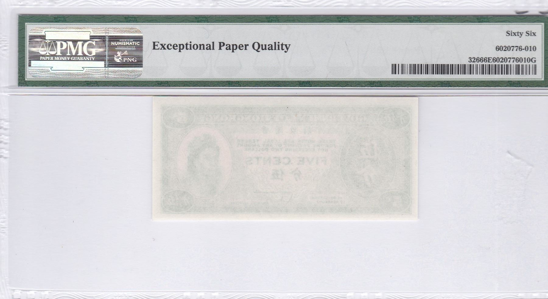 Hong Kong Government, ND (1961 -65) 5 cents. PMG 66EPQ.