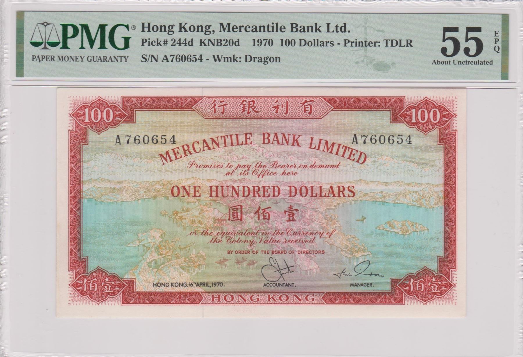 Hong Kong, Mercantile Bank Limited, 100 dollars, 1970, P-244d, PMG 55EPQ