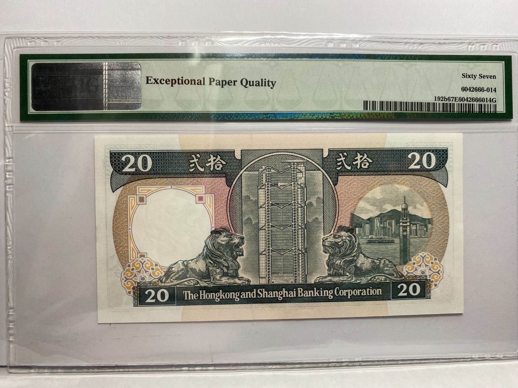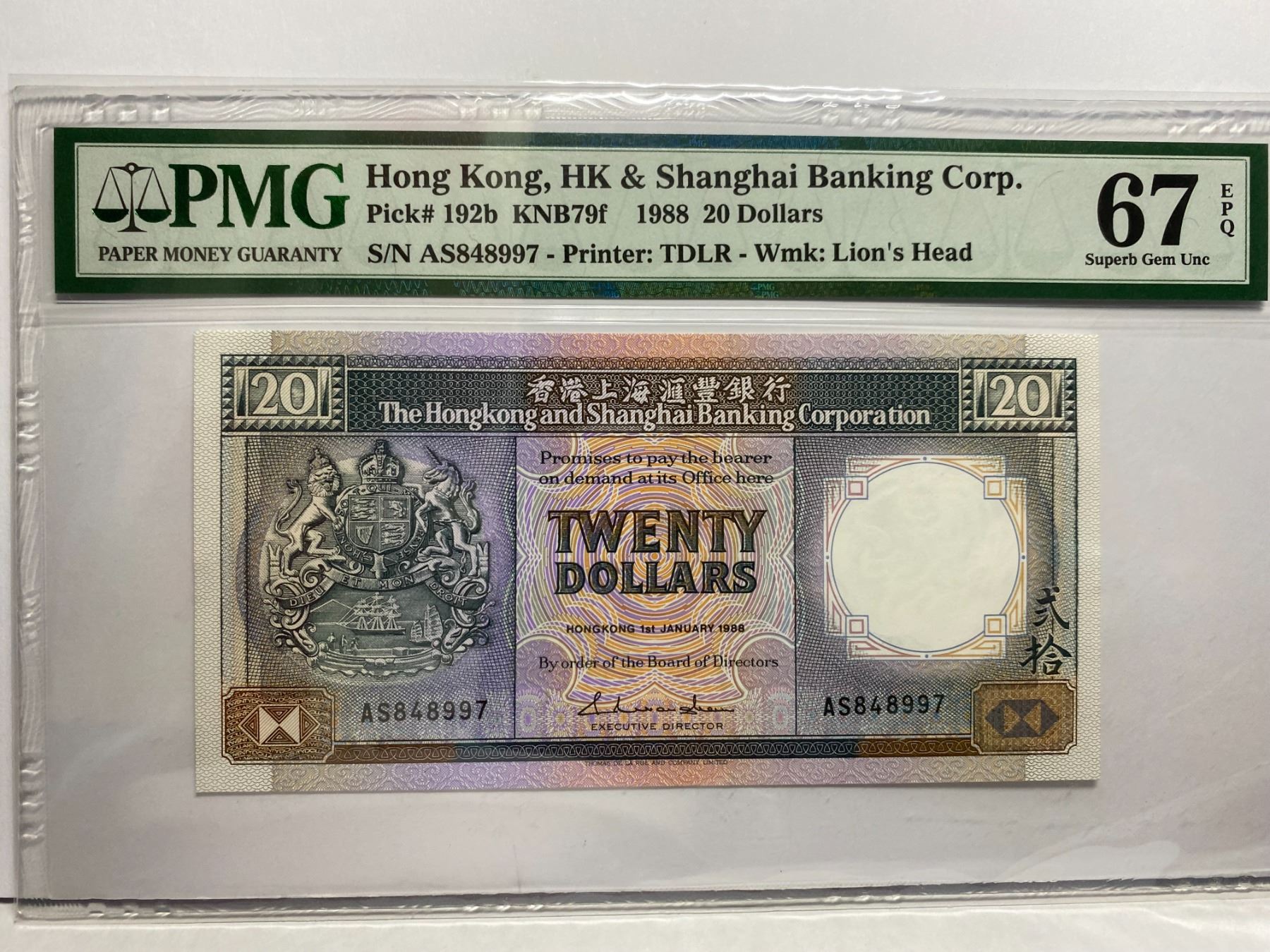 AS848997, 1988 香港匯豐銀行, 20 圓, PMG 67EPQ, AS848997, 1988 Hong Kong Shanghai Banking Corp, 20 dollars, PMG 67EPQ