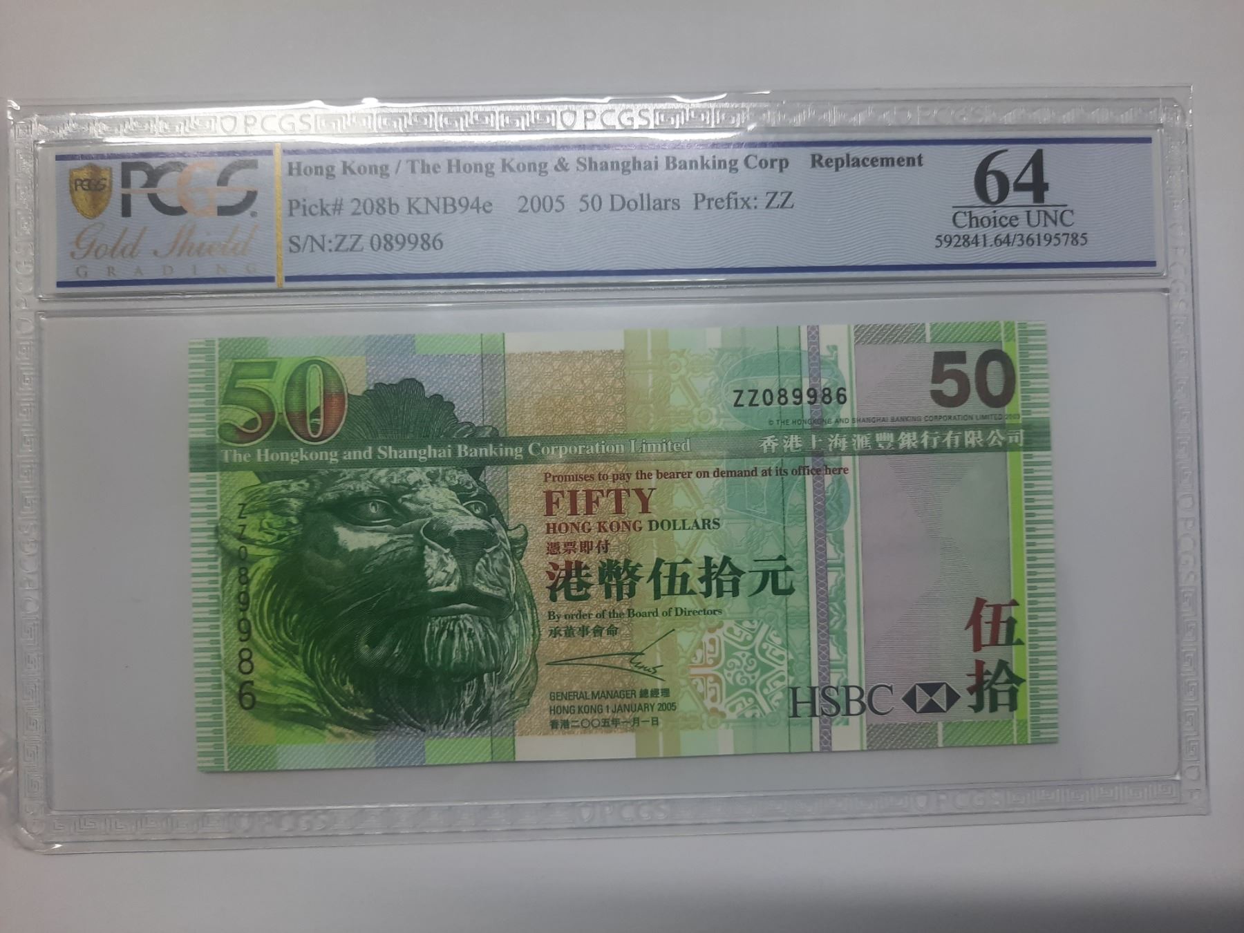 ZZ089986, 補版, 2005 香港匯豐銀行, 50 圓, PCGS 64, ZZ089986, Replacement, 2005 Hong Kong Shanghai Banking Corp, 50 dollars, PCGS 64