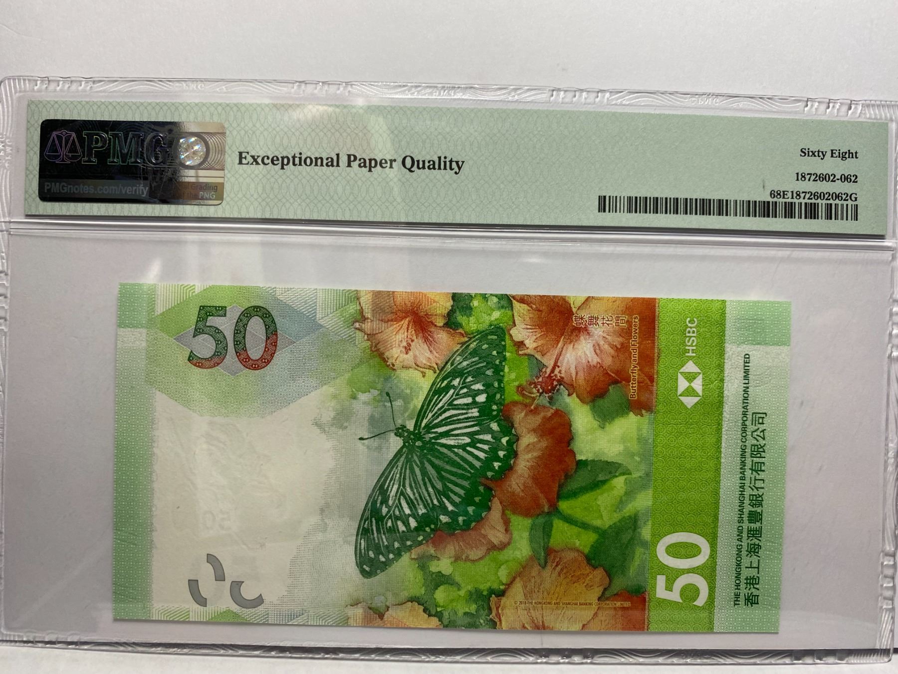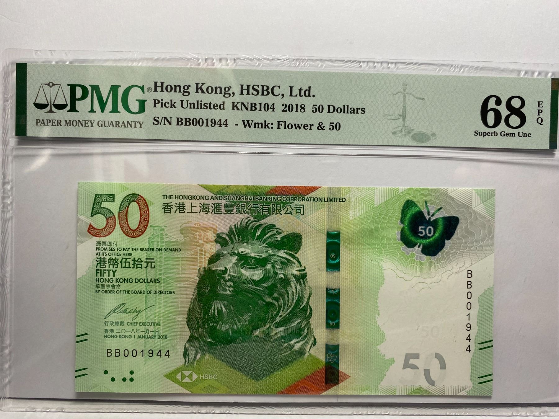 BB001944, 雙冠, 2018 香港匯豐銀行, 50 圓, PMG 68EPQ, BB001944, Double Prefix, 2018 Hong Kong Shanghai Banking Corp, 50 dollars, PMG 68EPQ