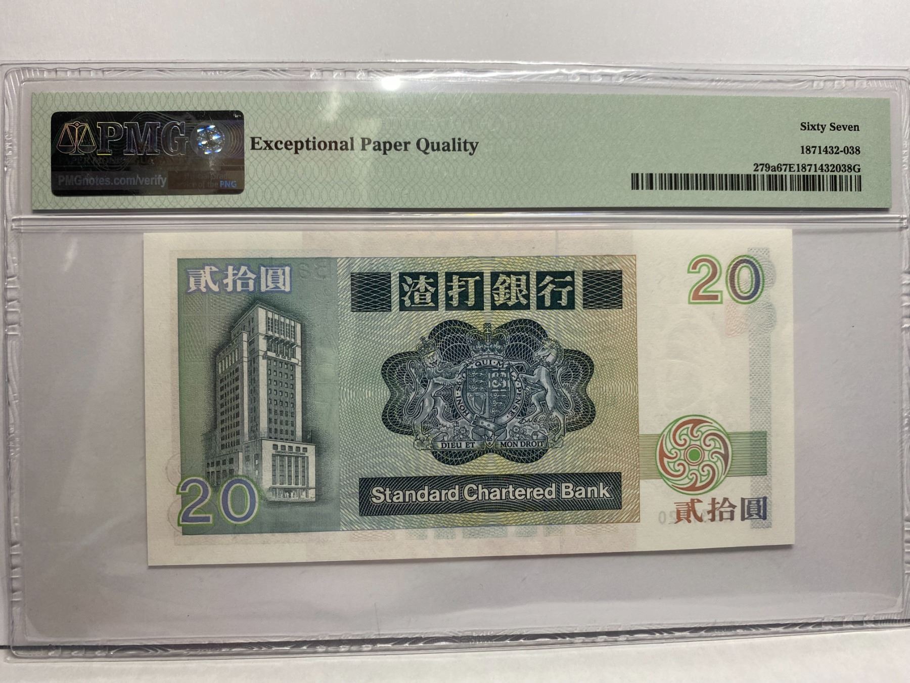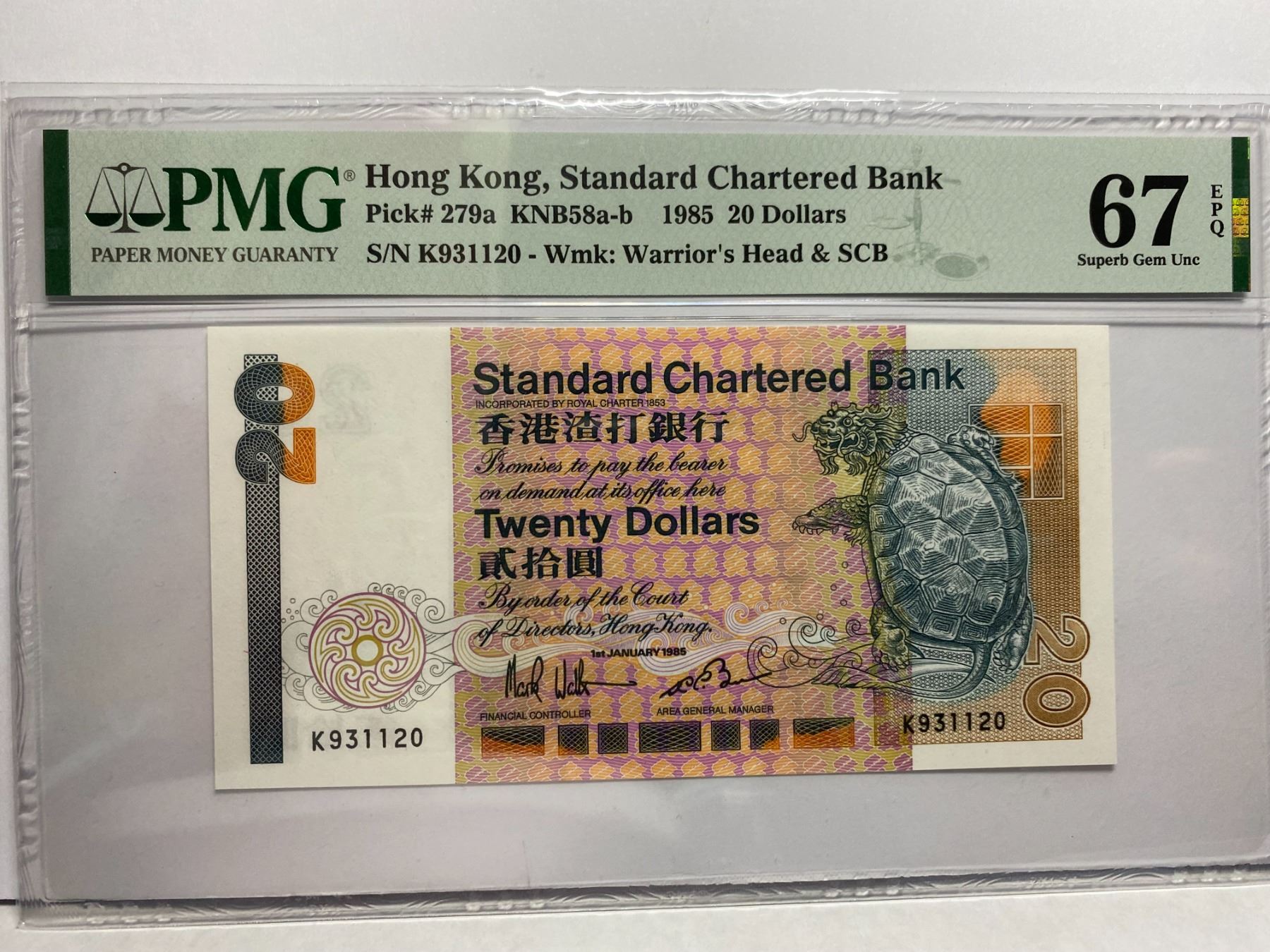 K931120, 1985 香港渣打銀行, 20 圓, PMG 67EPQ, K931120, 1985 Hong Kong Standard Chartered Bank, 20 dollars, PMG 67EPQ