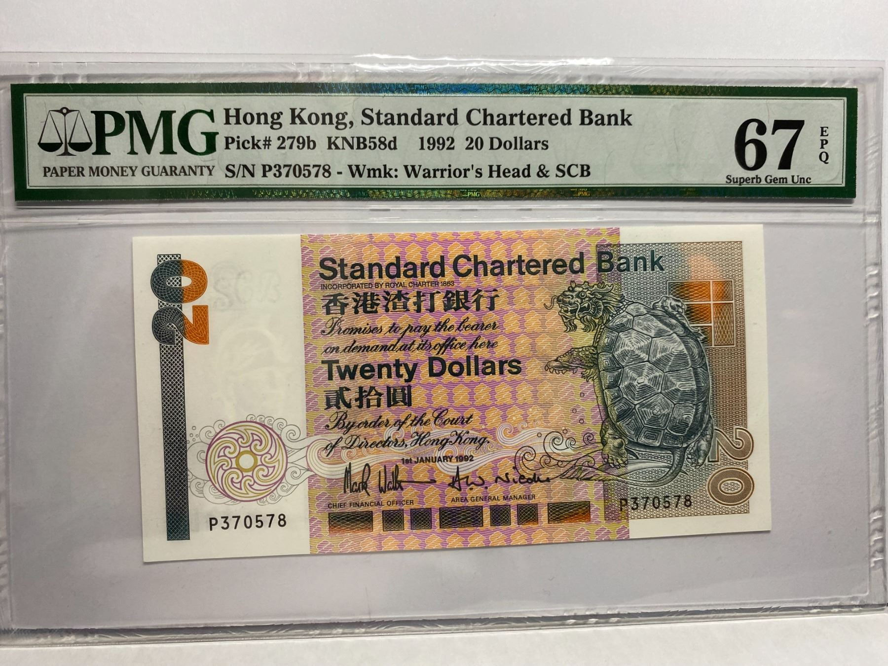 P370578, 1992 香港渣打銀行, 20 圓, PMG 67EPQ, P370578, 1992 Hong Kong Standard Chartered Bank, 20 dollars, PMG 67EPQ