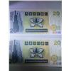 A251441,251442, 頭版, 1993 香港渣打銀行, 20 圓 直版x2, 靚紋, A251441,251442, First Prefix, 1993 Hong Kong Standard Chartered Bank, 20 dollars UNC Condition x2, Great Embossing