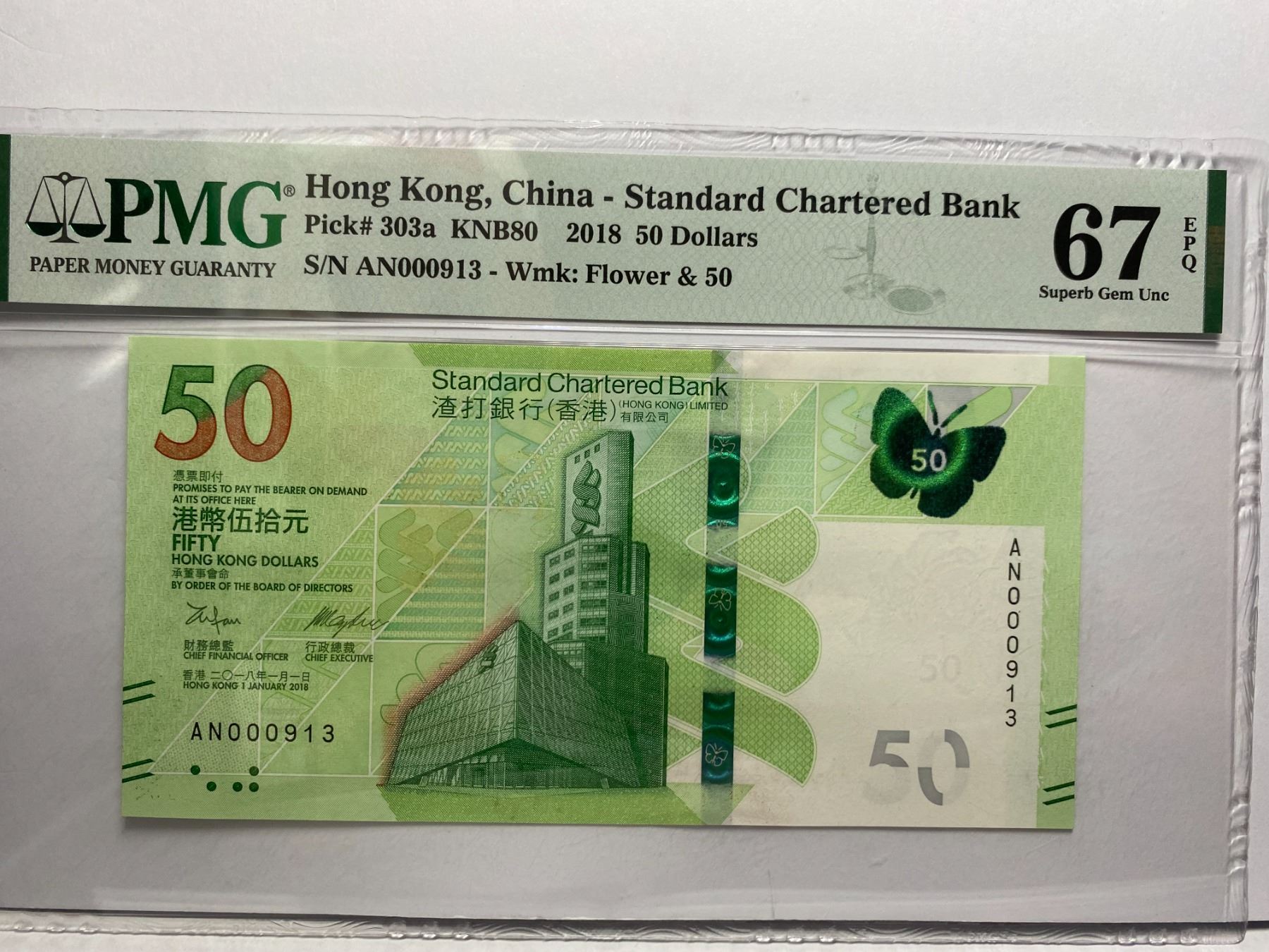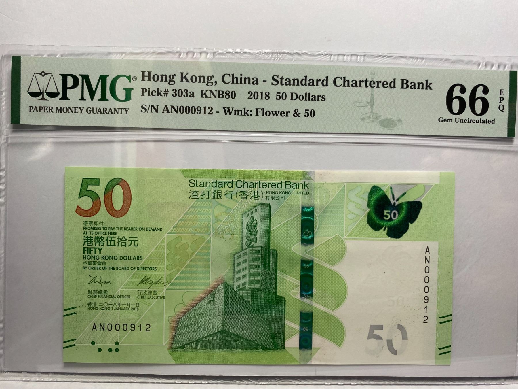 AN000912, 000913, 000916, 000917, 2018 香港渣打銀行, 50 圓, PMG 66EPQx2 及 67EPQx2, AN000912, 000913, 000916, 000917, 2018 Hong Kong Stardard Chartered Bank, 50 dollars, PMG 66EPQx2 and 67EPQx2