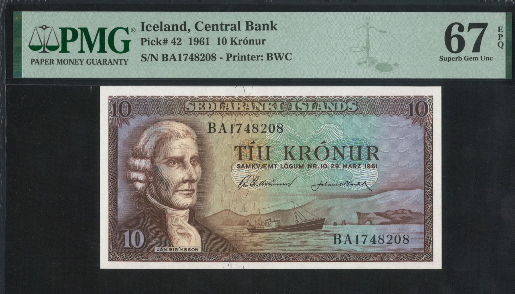 Iceland, 1961,10 Krónur, BA1748208. PMG 67EPQ.