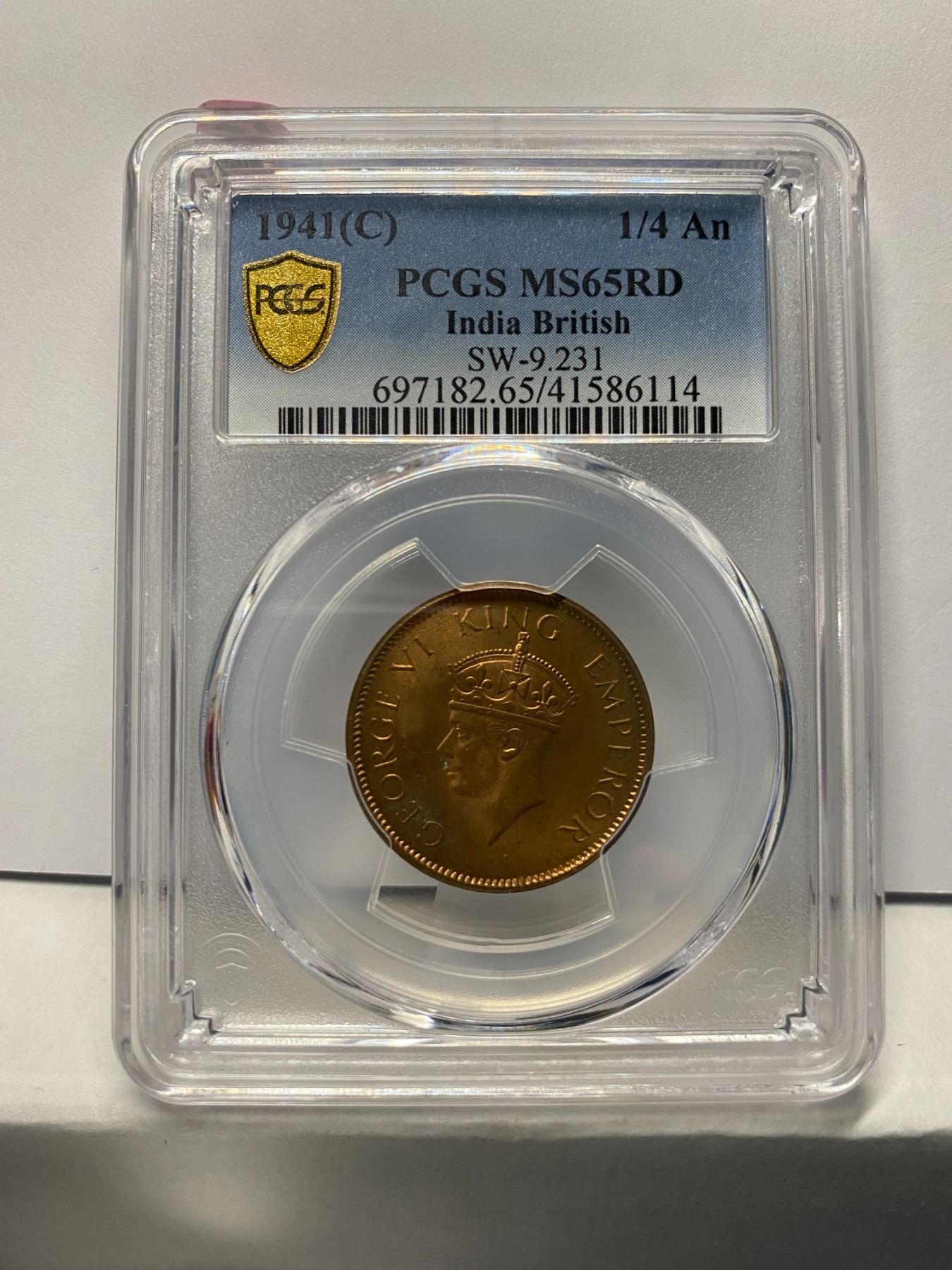 印度 British, 1/4 Anna 銅幣, 1941 C, SW-9.231, PCGS MS65RD, India British, 1/4 Anna bronze coin, 1941 C, SW-9.231, PCGS MS65RD