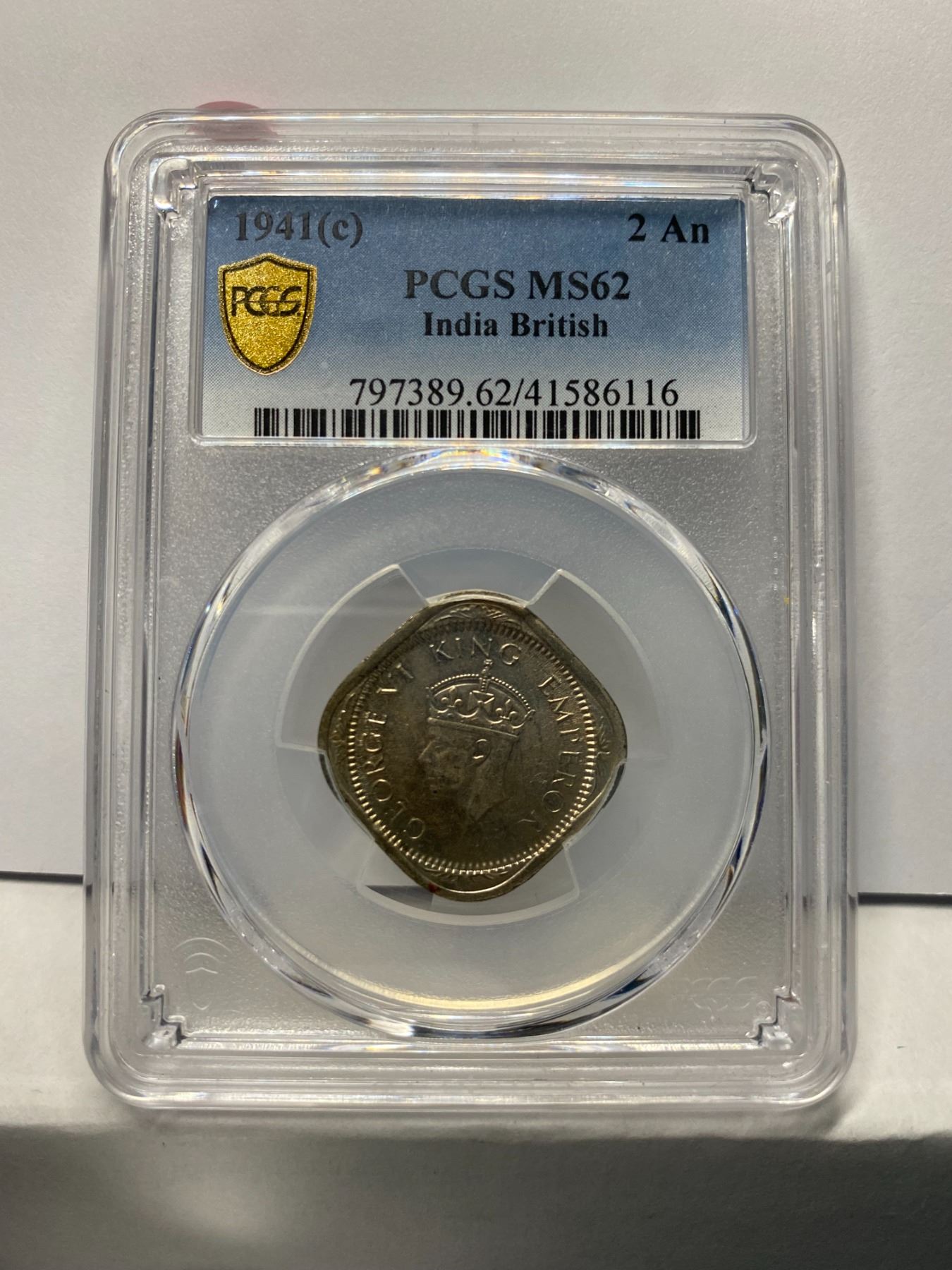 印度 British, 2 Anna 硬幣, 1941 C, PCGS MS62, India British, 2 Anna coin, 1941 C, PCGS MS62