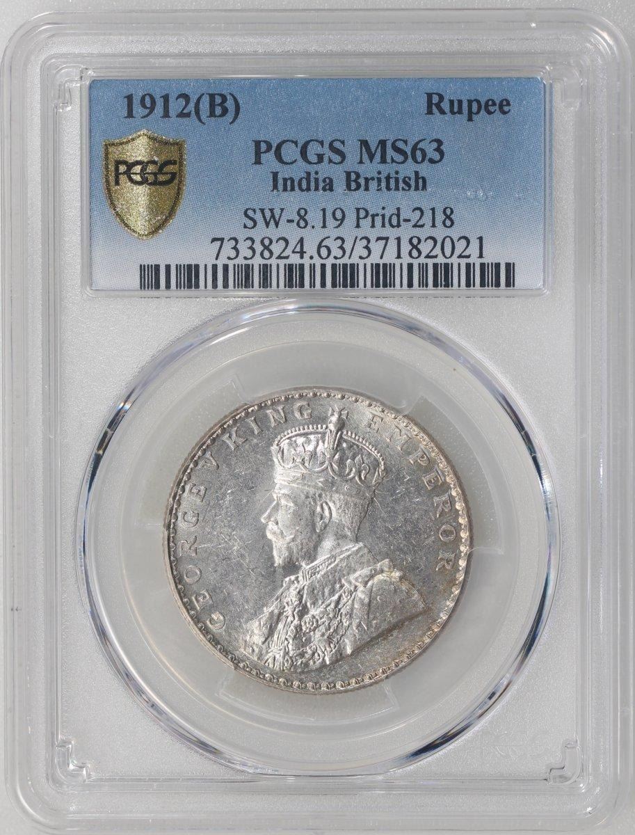 英屬印度盧比 銀幣, 1912 B, SW-8.19 Prid-218, PCGS MS63, India British, Rupee silver coin, 1912 B, SW-8.19 Prid-218, PCGS MS63