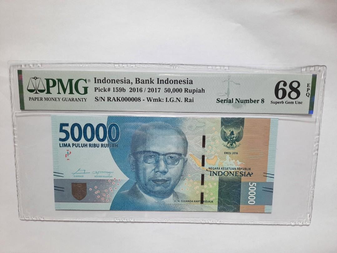 RAK000008 8號, 2016/2017 印度尼西亞銀行, 50,000 Rupiah, PMG 68EPQ, RAK000008 Serial Number 8, 2016/2017 Indonesia Bank, 50,000 Rupiah, PMG 68EPQ