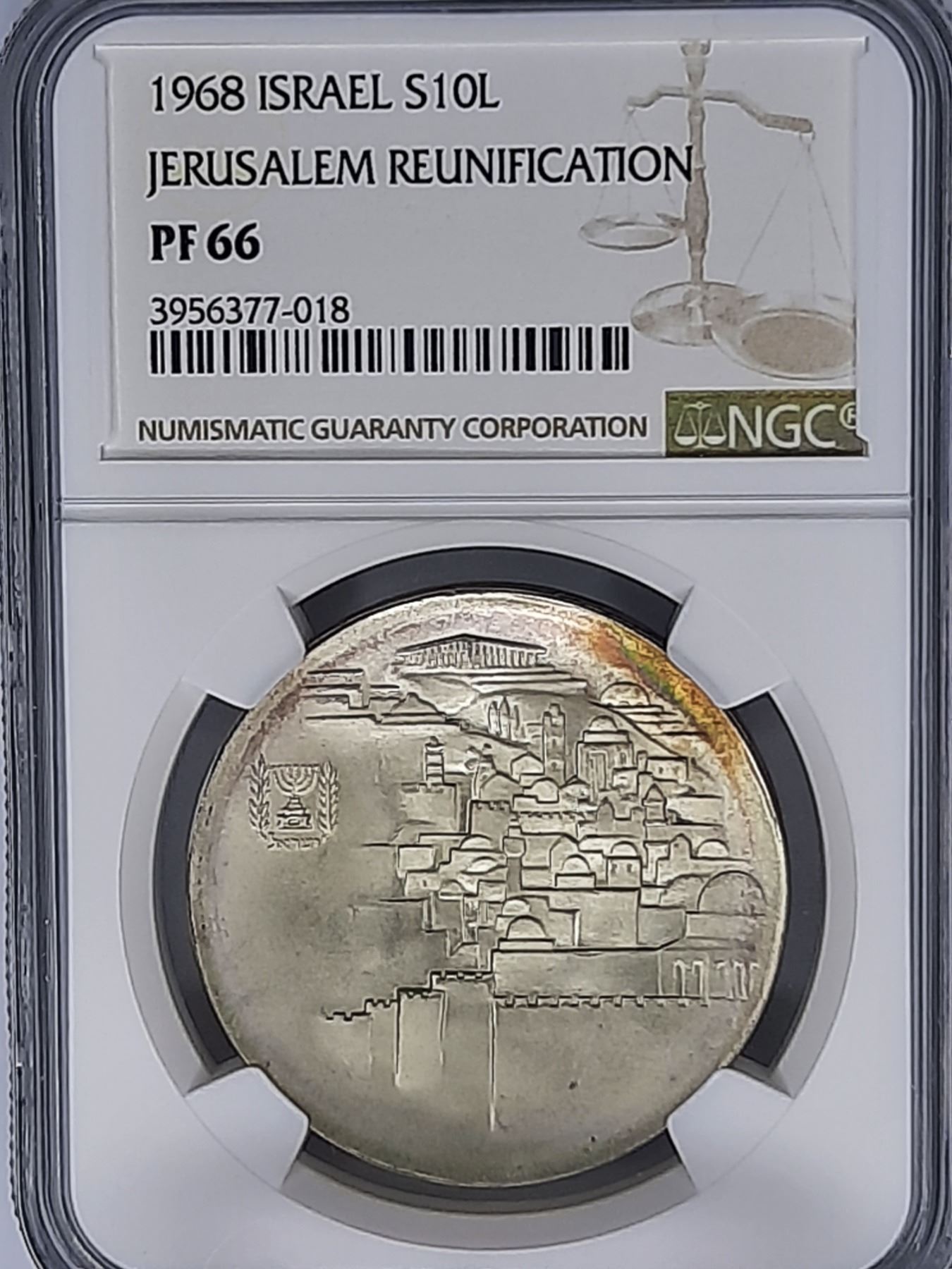 Israel, 10 Lirot 精鑄銀幣, 1968, Jerusalem Reunification, NGC PF66, Israel, 10 Lirot silver proof coin, 1968, Jerusalem Reunification, NGC PF66