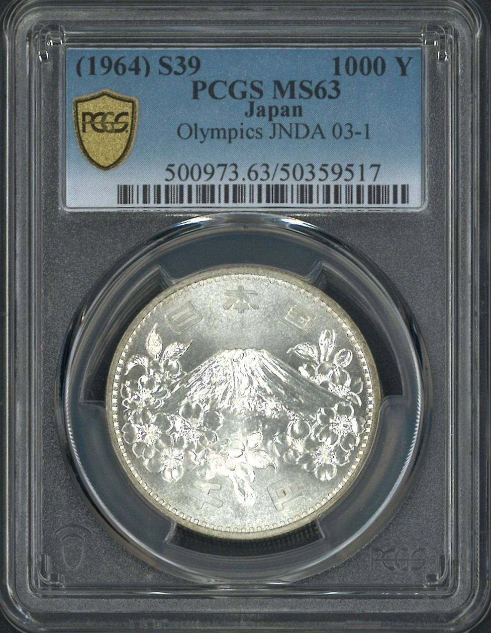 (1964) S39, 日本富士山奧運紀念銀幣 1000 Yen, PCGS MS63.