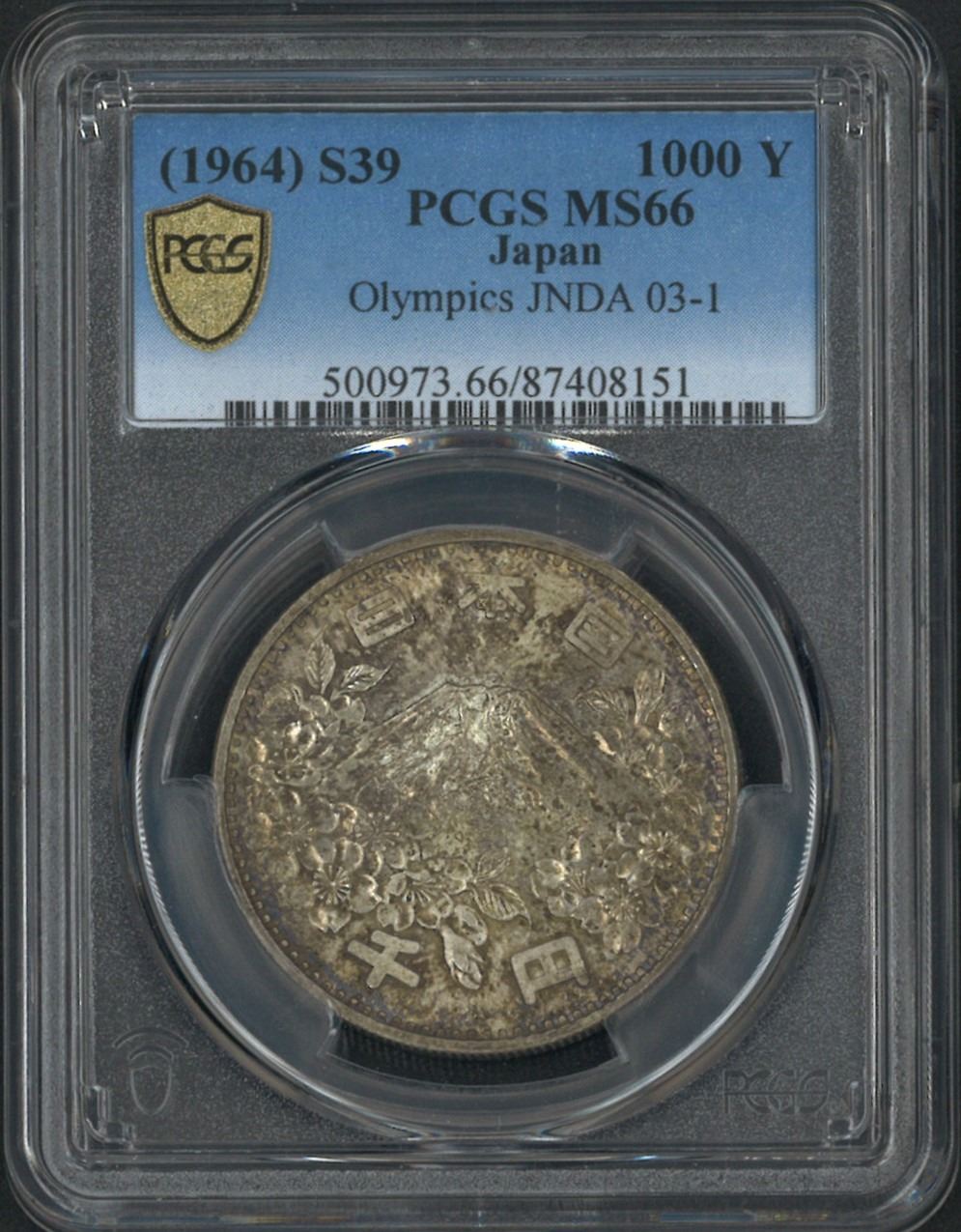 (1964) S39, 日本富士山奧運紀念銀幣 1000 Yen, PCGS MS66. 深黑包漿