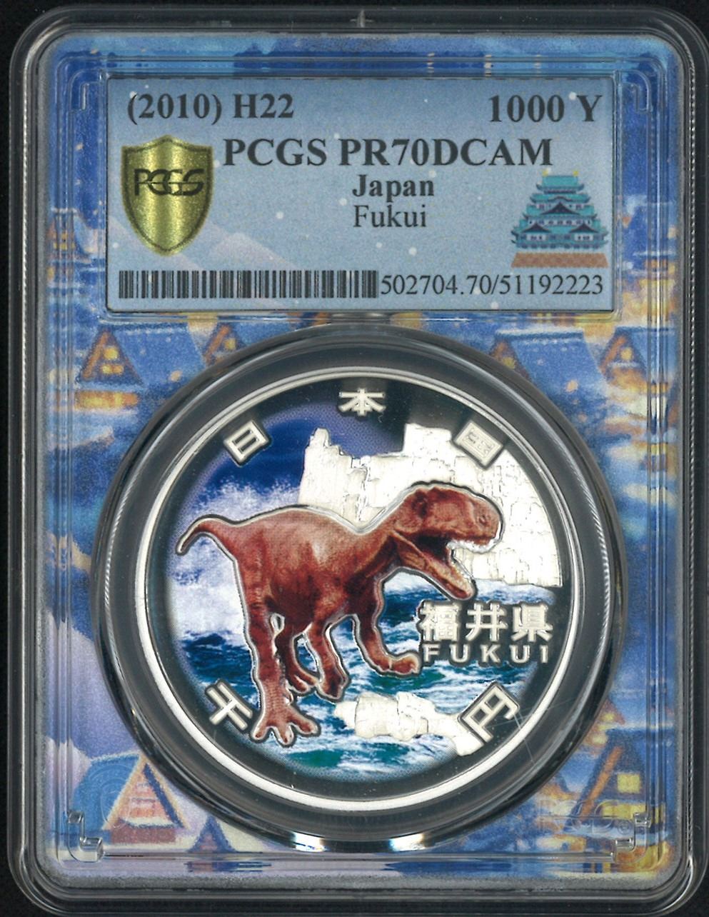 [滿分幣] 2010 日本福井縣自治六十年紀念精鑄一盎司塗彩1000円銀幣. PCGS PR70DCAM. 日本名古屋特別標.