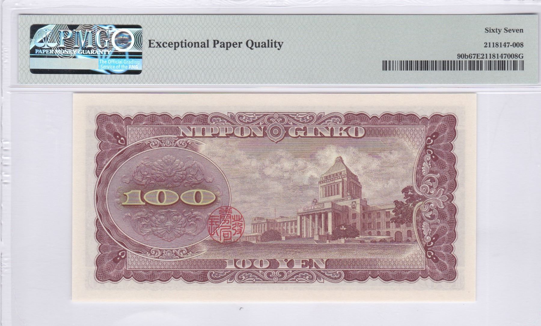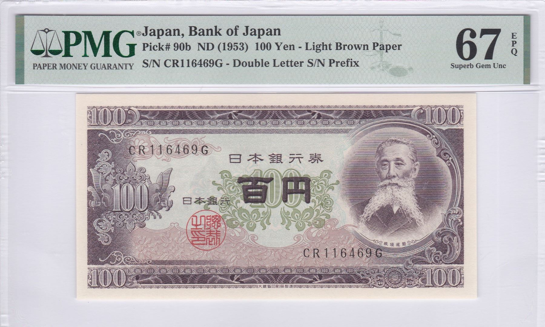 ND (1953), 日本 100円, 編號: CR116469G, PMG 67EPQ.